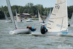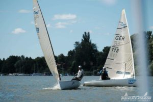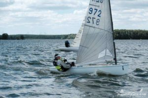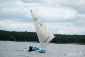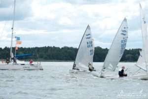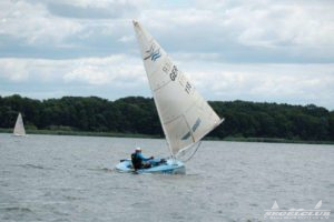 Am Samstag ging es dann gleich richtig zur Sache. Der Wind blies 7 – 12 ms aus N-NO. Die Gäste aus Polen und Tschechien bewiesen von Anfang an ihr Können und zeigten, das sie in der Lage sind, um den Sieg zu kämpfen. Marek Jarocki setzte sich im 1. Lauf vor Dirk Zilius und Oliver Bronke durch. Der Wind war nicht nur lebhaft, er quälte uns auch mit enormen Drehungen, so dass sich keiner auf eine bestimmte Seite festlegen konnte, die ihn dann sicher ins Ziel brachte. Es kam zu erstaunlichen Platzgewinnen und Verlusten.