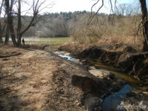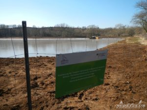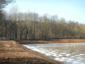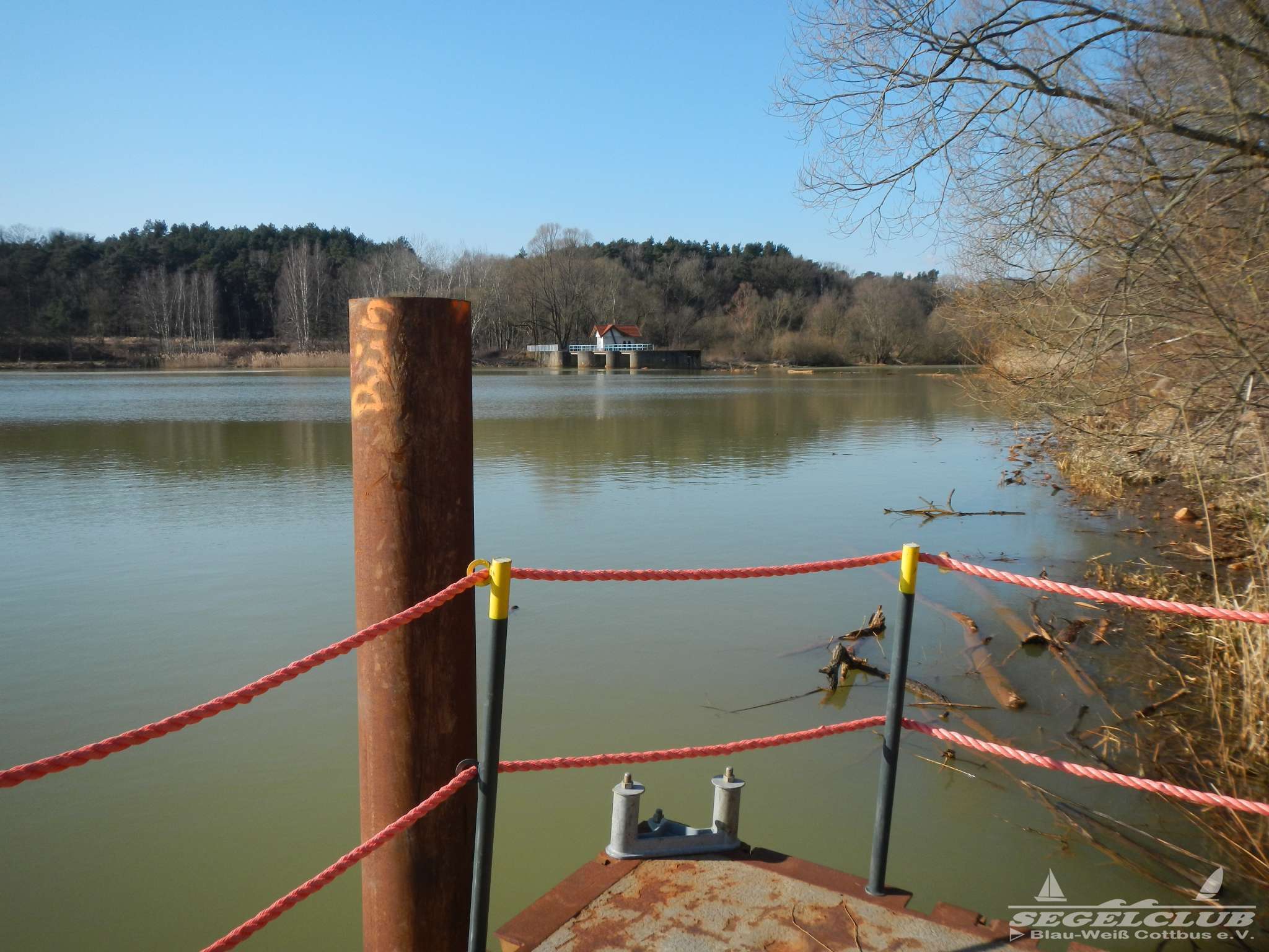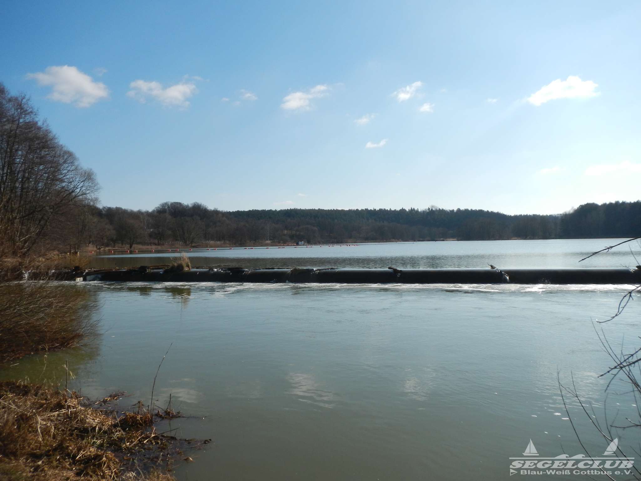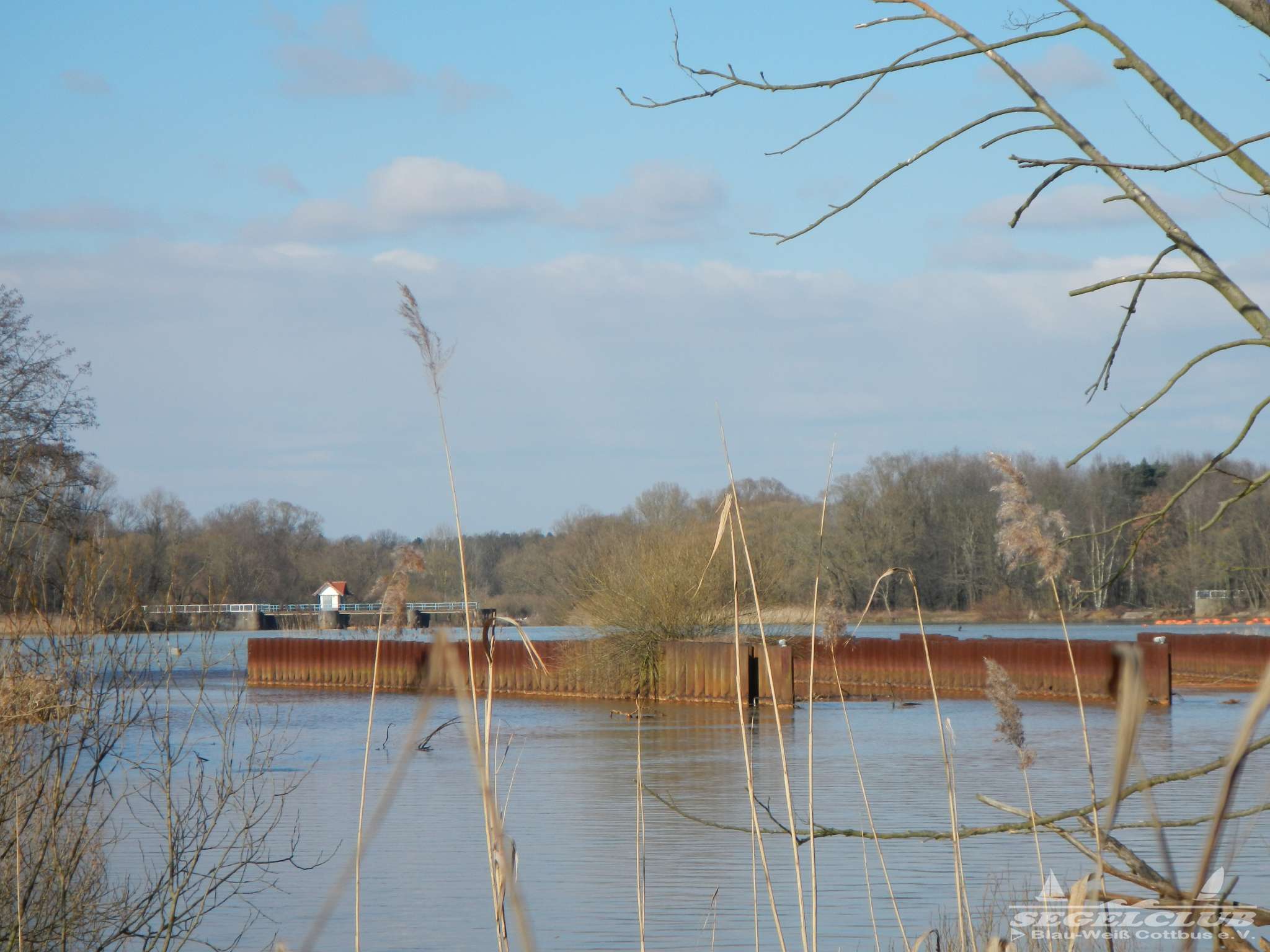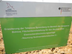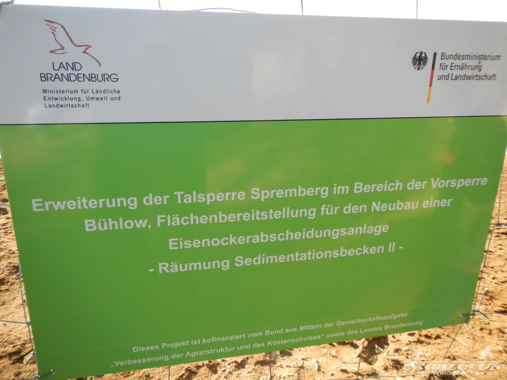 Als wir vom Parkplatz an der Brücke in Bühlow zum Vorstaubecken liefen viel mir gleich auf das auf der Rechten Seite ein großer Wall am Wegesrand aufgetürmt ist. Nachdem wir dort mal raufgeklettert sind, sahen wir das hier ein neues „Sedimentationsbecken II“ entstanden ist. Hier wird also die Masse aus abgestandenen Eisenoxid, Schlamm, Wasser usw. aus der Vorsperre eingeleitet.