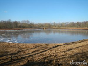 Dann steht sich das ganze ab und das saubere Wasser von der Oberfläche wird wieder in den Zufluss vom See geleitet. Es gibt insgesamt derzeit 3 solche Sedimentationsbecken. Ein schönen Bericht der Lausitzer Rundschau zur Entschlammung der Seimentationsbecken hatte ich bereits auf unserer Seite verlinkt. Wahrscheinlich werden diese nach und nach befüllt und zwischenzeitlich nach dem Abstehen, wenn diese trocken sind mit richtigen „normalen“ Baggern ausgebaggert und die Masse dann weggefahren auf eine Deponie. Aus Zeitungsartikeln der LR kann man entnehmen, das die Schlämme regelmäßig in den Sedlitzer See und in den Wildschweinteich bei Schipkau verspült werden. Soweit so gut.