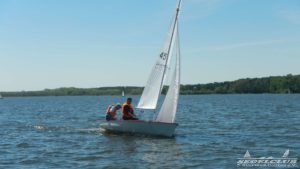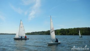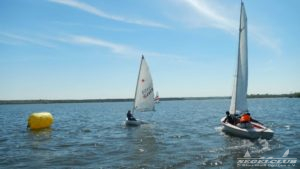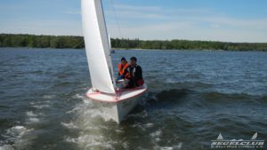 Zunächst einmal war es der Auftakt für unsere jugendlichen Kinder. Die neu angeschafften Laser wurden erst zu 2 Trainingsterminen gesegelt, und im Grunde kommen unsere Mädels mit Ihnen gut klar. Da wir aufgrund eines Ausfalls einer Ruderanlage zum letzten Trainingstermin nur noch 2 funktionierende Ruderanlagen hatten, musste ein Laser an Land bleiben. So segelten also die Neulinge Hanna und Jule heute das erste mal mit dem Laser eine Regatta mit. Der dritte im Bunde (Jannes) ging Fremd und fuhr bei seinem Vater auf dem 2-Mann Laser mit. Der Wind war mit Windstärke 3-4 für die Mädels genau richtig. Am Morgen waren die Gesichter noch sehr besorgt, da es beim letzten Training Schwierigkeiten beim wiederaufrichten der Boote nach einer Kenterung gab. Diese verflogen jedoch recht schnell.