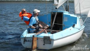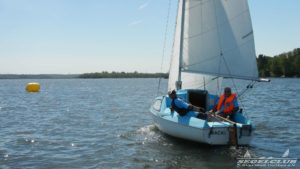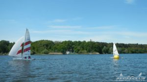 Auch nach einem Besitzerwechsel des „blauen Wals“ war dieser wieder unterwegs mit neuen und altem Eigner als Crew. Die legten sich wie man unten auf den Bildern sehen kann gewaltig ins Zeug ! Ebenfalls schön war, daß wir „Wolle“ mit dabei hatten, diesmal mit einem Alu Mast da ja bei einer der letzten Regatten deren Holzmast im wahrsten Sinne des Wortes „die Biege“ gemacht hatte.