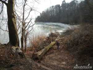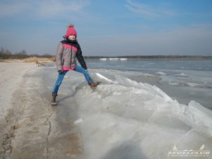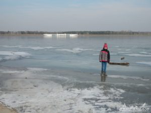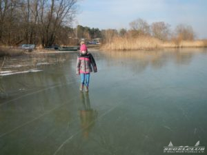 Dieses Wochenende unternahmen wir einen Ausflug an den See bei herrlicher Sonne und tollem Wetter ! Dank der vergangenen frostigen Tage und Nächte bei denen die Temperaturen teilweise bis zu -16 Grad sunken war der See zu großen Teilen zugefroren.Vorsicht war trotz allem geboten, denn schon nach wenigen Metern waren teilweise größere Risse und Furchen in der Eisdecke zu sehen. Meiner Schätzung nach hatte die Eisdecke am Rand eine Dicke von 15 bis 20 cm. Wir waren vorbildlich und liefen nur soweit hinaus aufs Eis wie es auch nur „Gürtel-tief“ unterm Eis war.