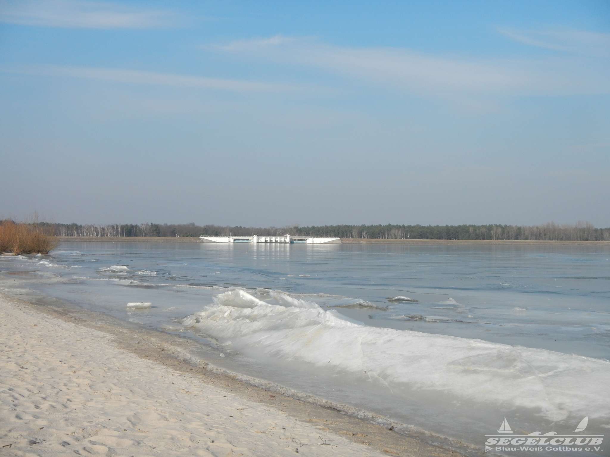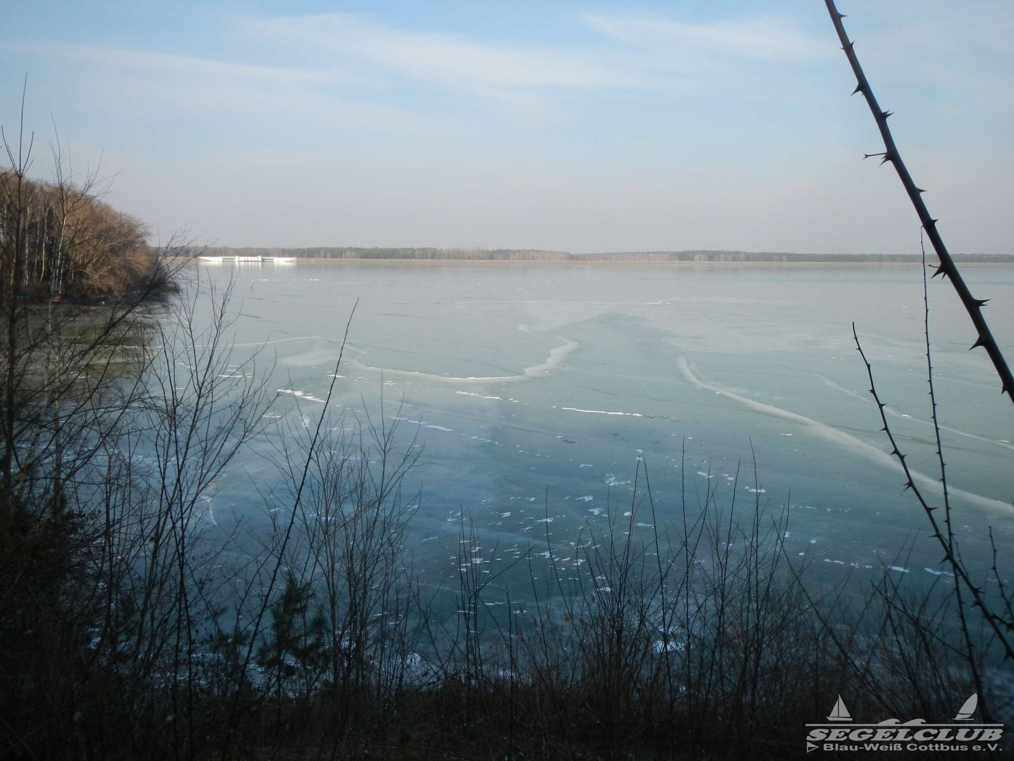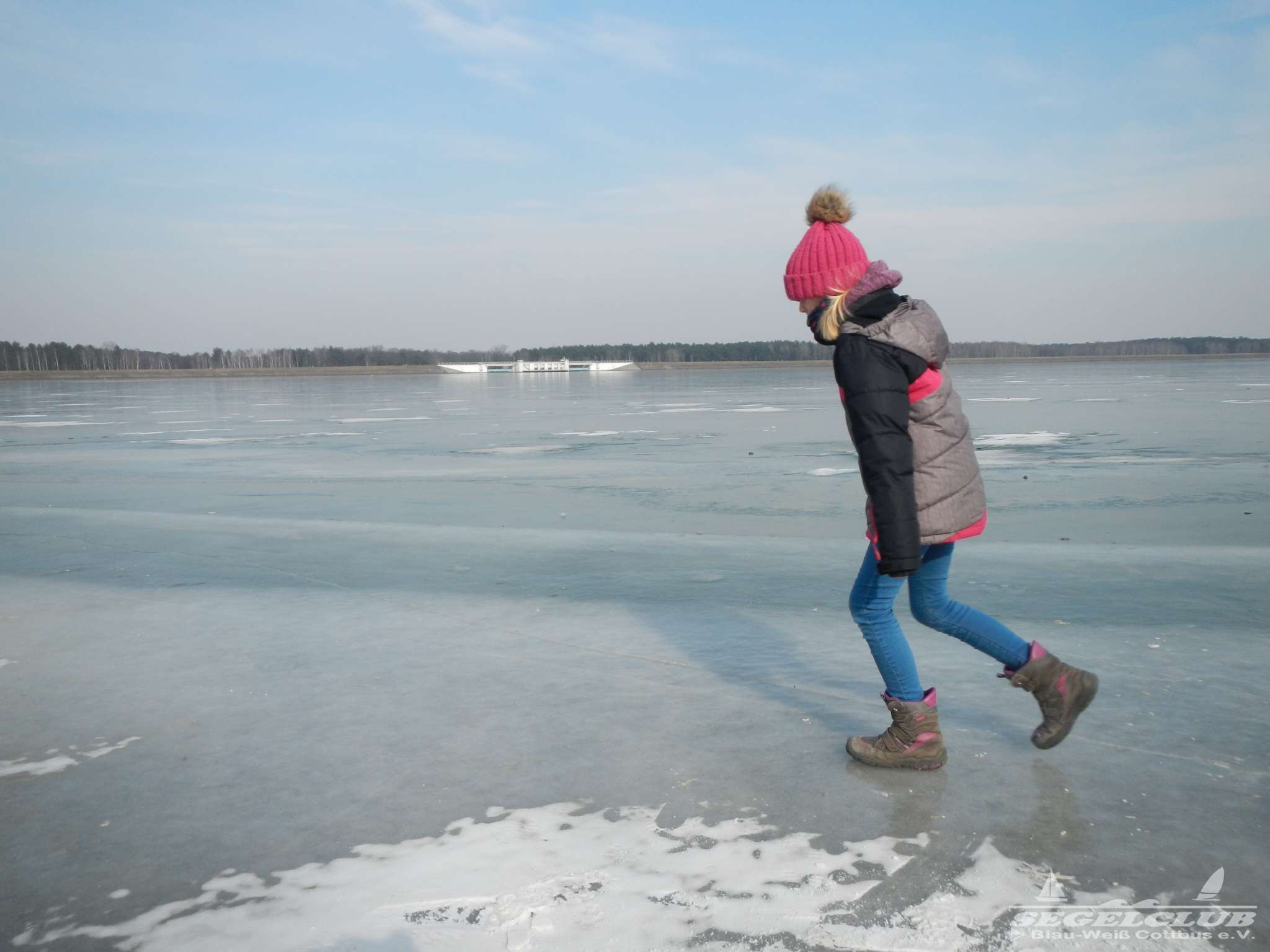 Dieses Wochenende unternahmen wir einen Ausflug an den See bei herrlicher Sonne und tollem Wetter ! Dank der vergangenen frostigen Tage und Nächte bei denen die Temperaturen teilweise bis zu -16 Grad sunken war der See zu großen Teilen zugefroren.Vorsicht war trotz allem geboten, denn schon nach wenigen Metern waren teilweise größere Risse und Furchen in der Eisdecke zu sehen. Meiner Schätzung nach hatte die Eisdecke am Rand eine Dicke von 15 bis 20 cm. Wir waren vorbildlich und liefen nur soweit hinaus aufs Eis wie es auch nur „Gürtel-tief“ unterm Eis war.