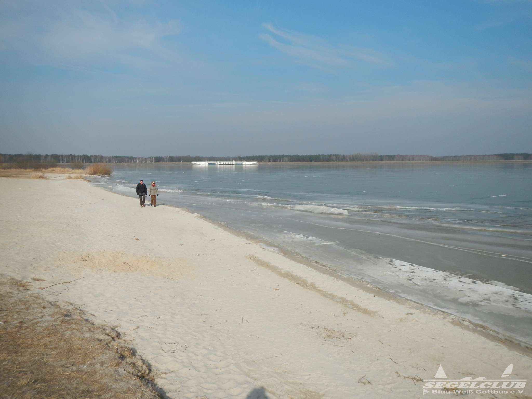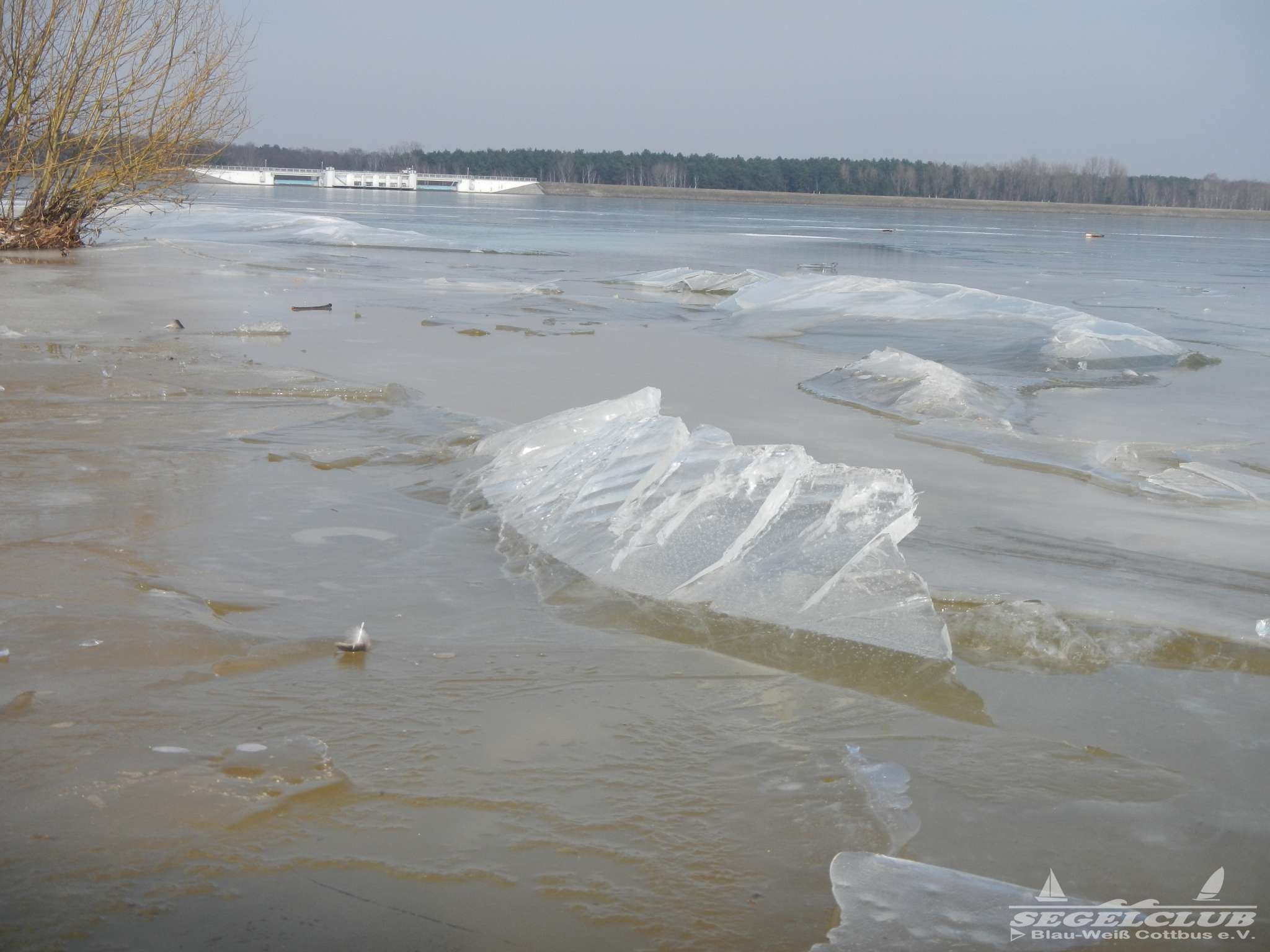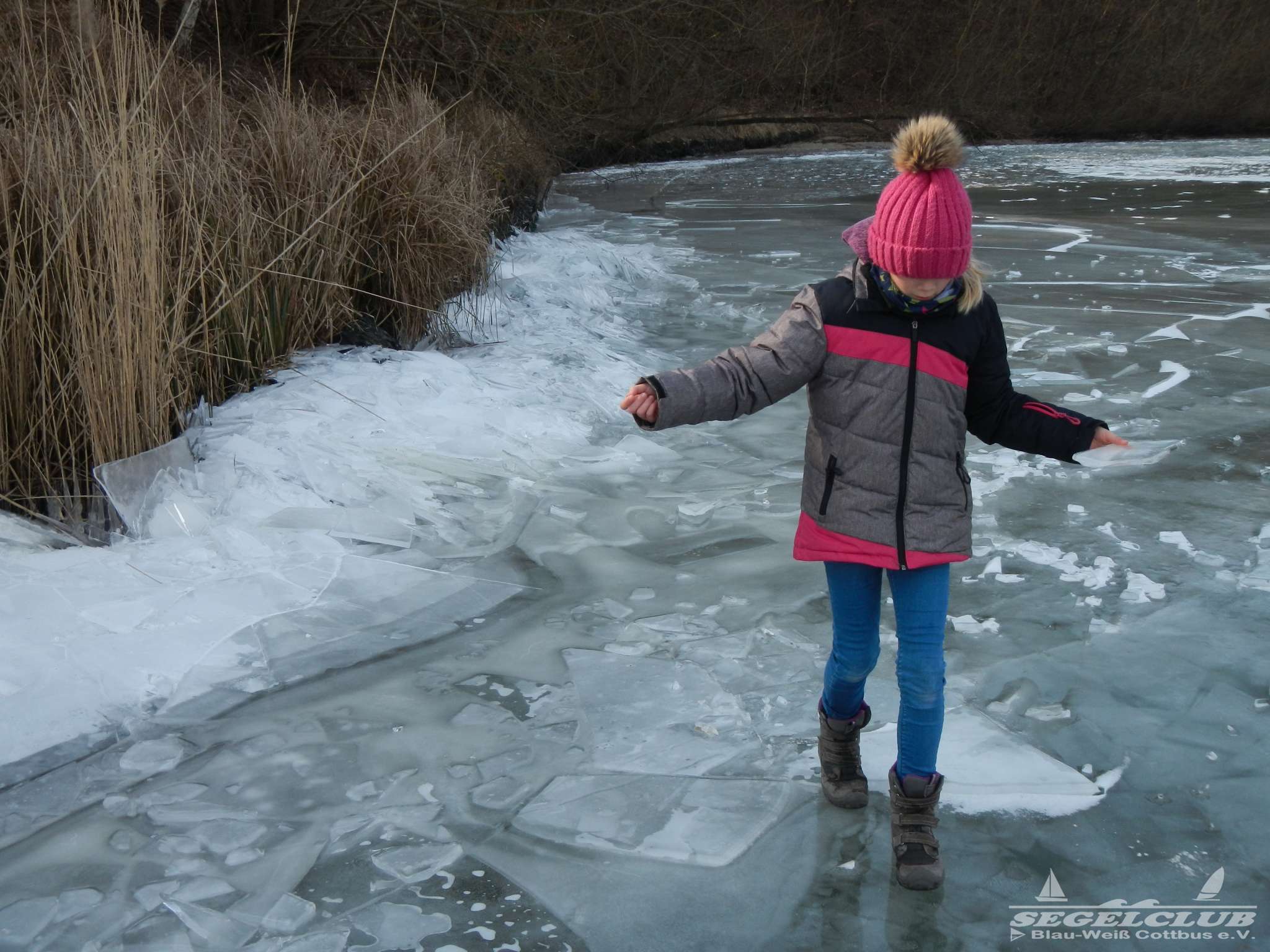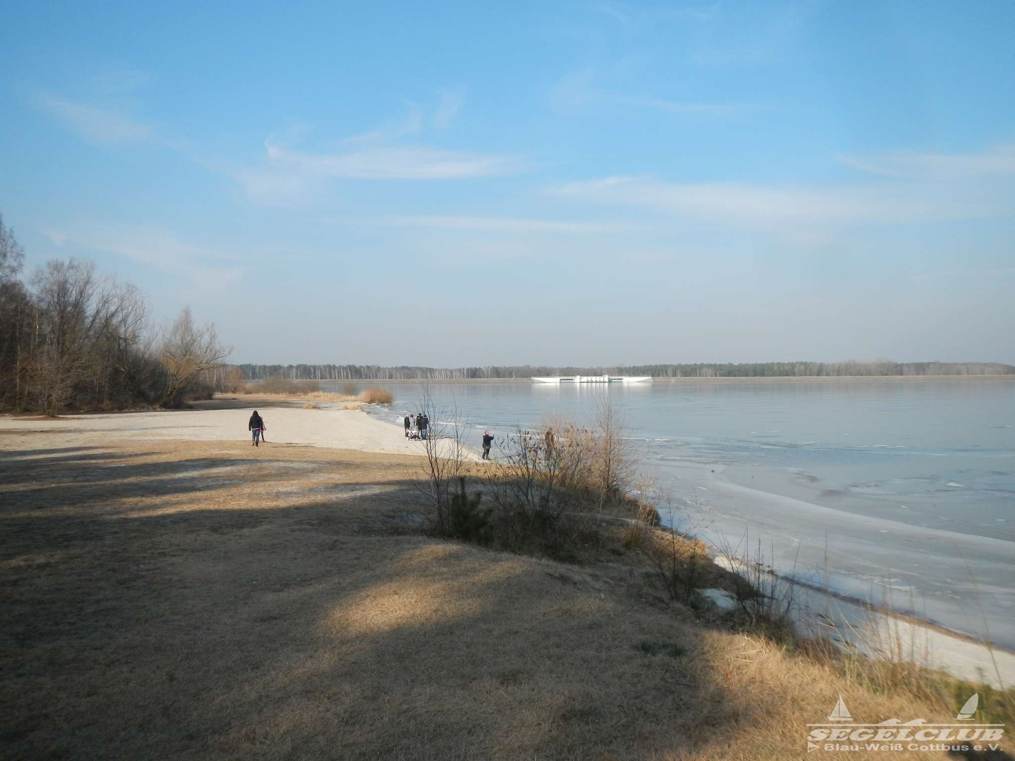 Dieses Wochenende unternahmen wir einen Ausflug an den See bei herrlicher Sonne und tollem Wetter ! Dank der vergangenen frostigen Tage und Nächte bei denen die Temperaturen teilweise bis zu -16 Grad sunken war der See zu großen Teilen zugefroren.Vorsicht war trotz allem geboten, denn schon nach wenigen Metern waren teilweise größere Risse und Furchen in der Eisdecke zu sehen. Meiner Schätzung nach hatte die Eisdecke am Rand eine Dicke von 15 bis 20 cm. Wir waren vorbildlich und liefen nur soweit hinaus aufs Eis wie es auch nur „Gürtel-tief“ unterm Eis war.