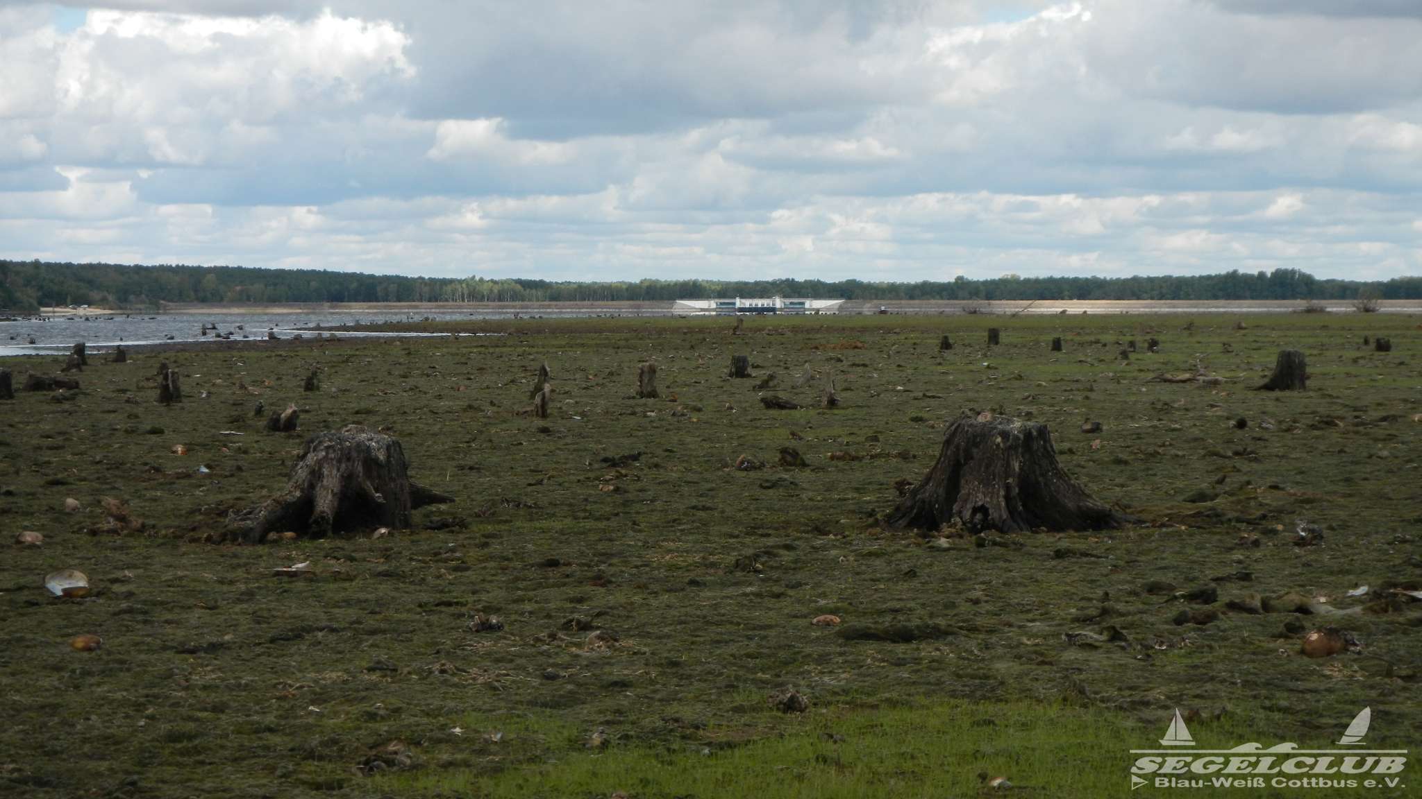 Die Uferbereiche ändern sich manchmal von Woche zu Woche. Dadurch das der Stausee Spremberg eine Flachwassertalsperre ist, gibt es von einer auf die nächste Woche plötzlich riesige Landflächen mitten auf dem See. Dort wo man sonst segeln kann, kann man nun rumlaufen und sehen was so alles auf dem Grund vom See schlummert.