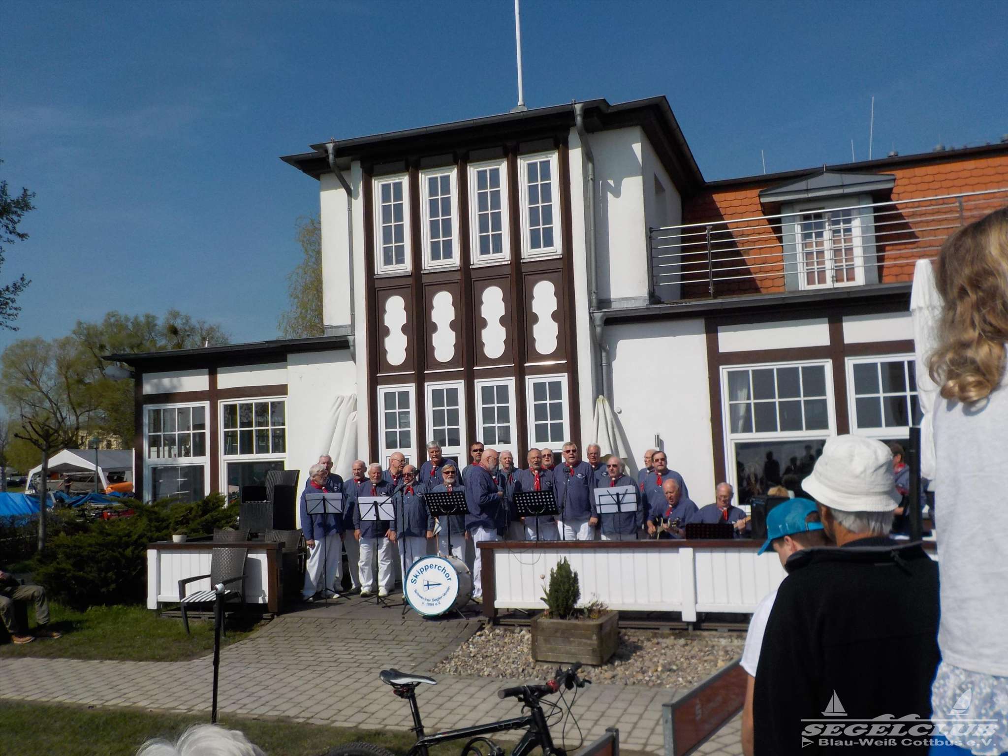 Am Samstag dann die offizielle Eröffnung des Catcup, welcher vom Schweriner Segler-Verein v. 1894 e.V. organisiert wurde. Der vereinseigene Skipper-Chor spielte zur Einstimmung ein paar Seemannslieder. An die Teilnehmer wurden noch Aufkleber vom Catcup verteilt und als Topcat Segler bekamen wir noch einen Werbeaufkleber für den Topcat Worldcup in Jurmala (Riga, Litauen) – welche wir auf unserer Seabird anbrachten.