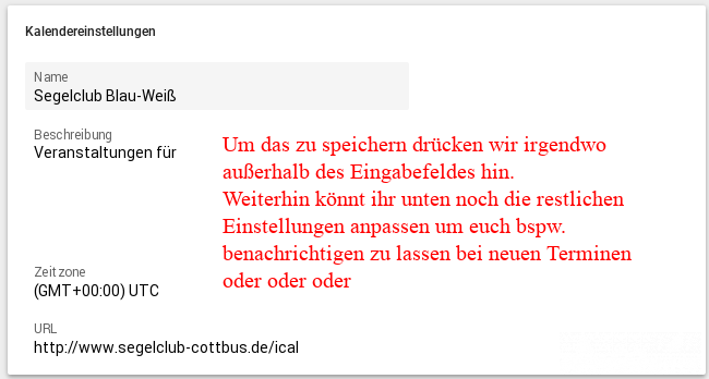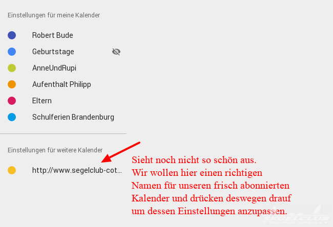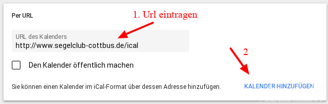 Hier nun die folgende Url eintragen: http://www.segelclub-cottbus.de/ical