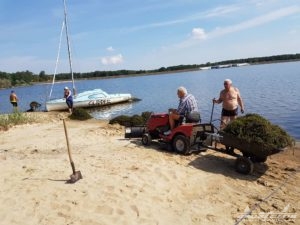 Am Samstag wurde zum außerordentlichen Arbeitseinsatz aufgerufen. Es breitete sich im Uferbereich wieder die Wasserpest aus. Das mindert so leider die Freude beim Segeln und Baden. Also wurde gemeinsam tatkräftig zugegriffen. Es war trotz Ferienzeit eine gute Beteiligung unserer Segler vorhanden. Mit Harken bewaffnet bereiteten wir der Plage Einhalt, auch wenn das gute Resultat nicht auf Dauer zu halten sein wird. Es kam ordentlich was zusammen, es hätte sicherlich für einige Salatteller gereicht. Nebenbei wurden auch die Slipanlagen wieder fit gemacht.