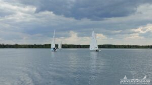 Nachmittag ging es auf zu Wettfahrt 2. Es war ein ähnliches Disaster. Wenig Wind. Teilweise 15 Minuten auf dem See rumstehen. Es gab aber phasenweise Wind und es war auch interessant zu merken, dass sich jede kleine Segeltrimmung auf die Geschwindigkeit der Boote auswirkt.