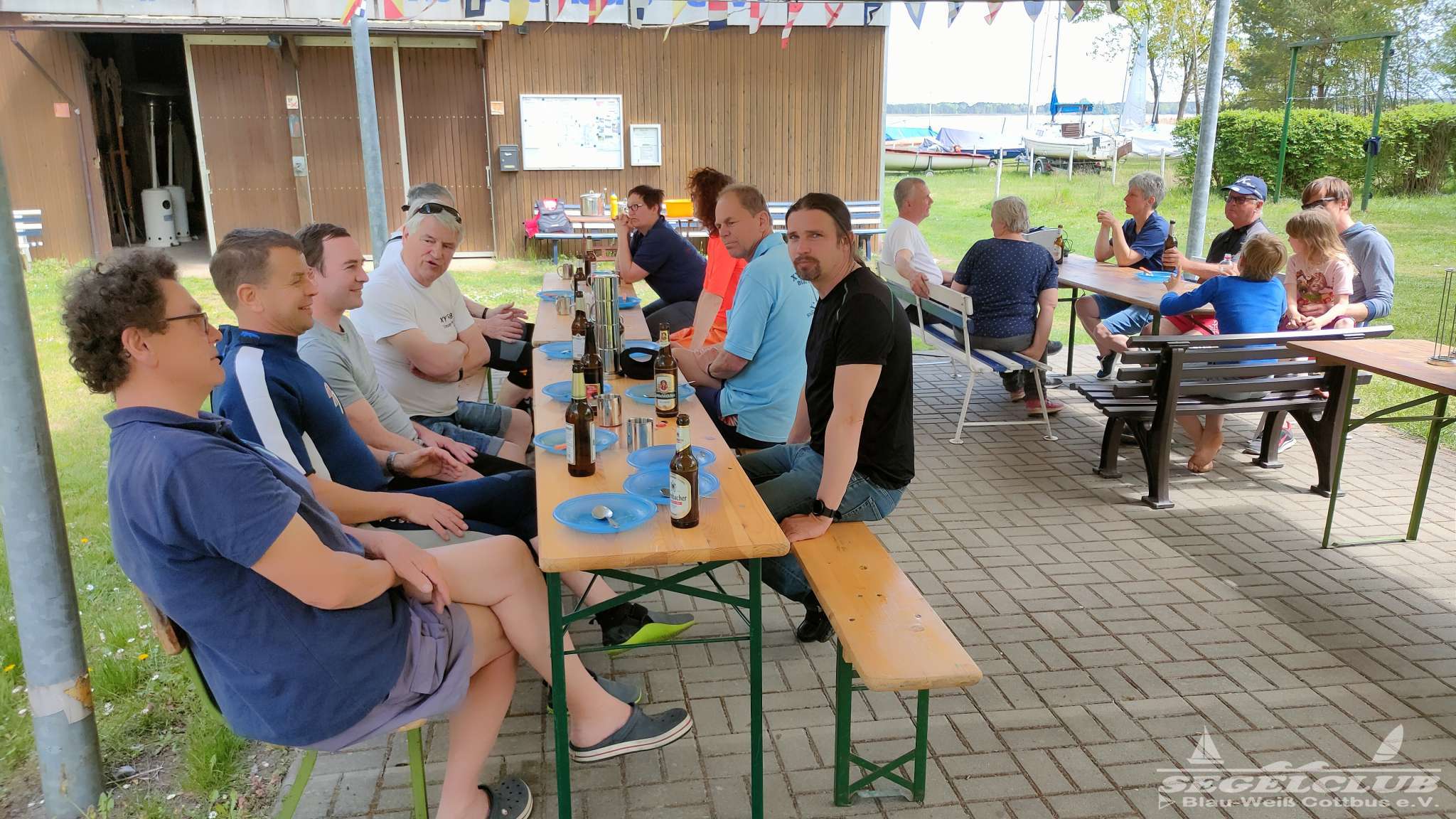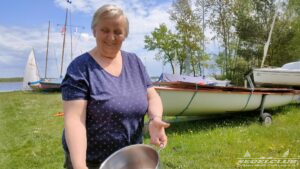 Nach der zweiten Vollsonnendosis legten wir fest, zum Kaffeetrinken anzulegen und bis 15.30 Uhr zu warten, ob sich noch windmäßig etwas tut. Dem war nicht so. Also ließen wir es bei den 2 Wettfahrten bewenden. Nachdem alles aufgeräumt und jeder sein Boot auf Land gebracht hatte sollte die Siegerehrung stattfinden. Auch hier wieder was gelernt.