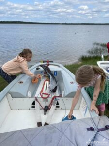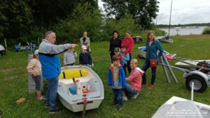 Zu Beginn inspizierten wir gemeinsam das Gelände des Segelclubs und suchten uns ein gemütliches Plätzchen für ein kleines Picknick. Die Kinder konnten es kaum erwarten, ihre Entdeckungstour fortzusetzen. Doch bevor es richtig losging, trat Jochen Rösler auf den Plan, ein erfahrener Jugendtrainer und passionierter Segler. Mit seinem Fachwissen und seiner Begeisterung zeigte er den Kindern die verschiedenen Teile des Opti-Bootes und erklärte, wofür sie gut sind. Die Kinder lauschten gespannt, während die Erwachsenen das mit dem Zuhören noch nicht so gut hinbekamen. Auch für Sie war es wahrscheinlich dolle Aufregend :-).