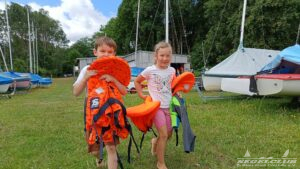Früh um 9 Uhr trafen sich acht aufgeregte Kinder der Kindergartengruppe „Grashüpfer“ zusammen mit ihrer Kindergärtnerin Uta und einigen Müttern am Segelclub. Die Sonne strahlte vom Himmel und versprach einen wundervollen Tag voller Abenteuer und Segelspaß.