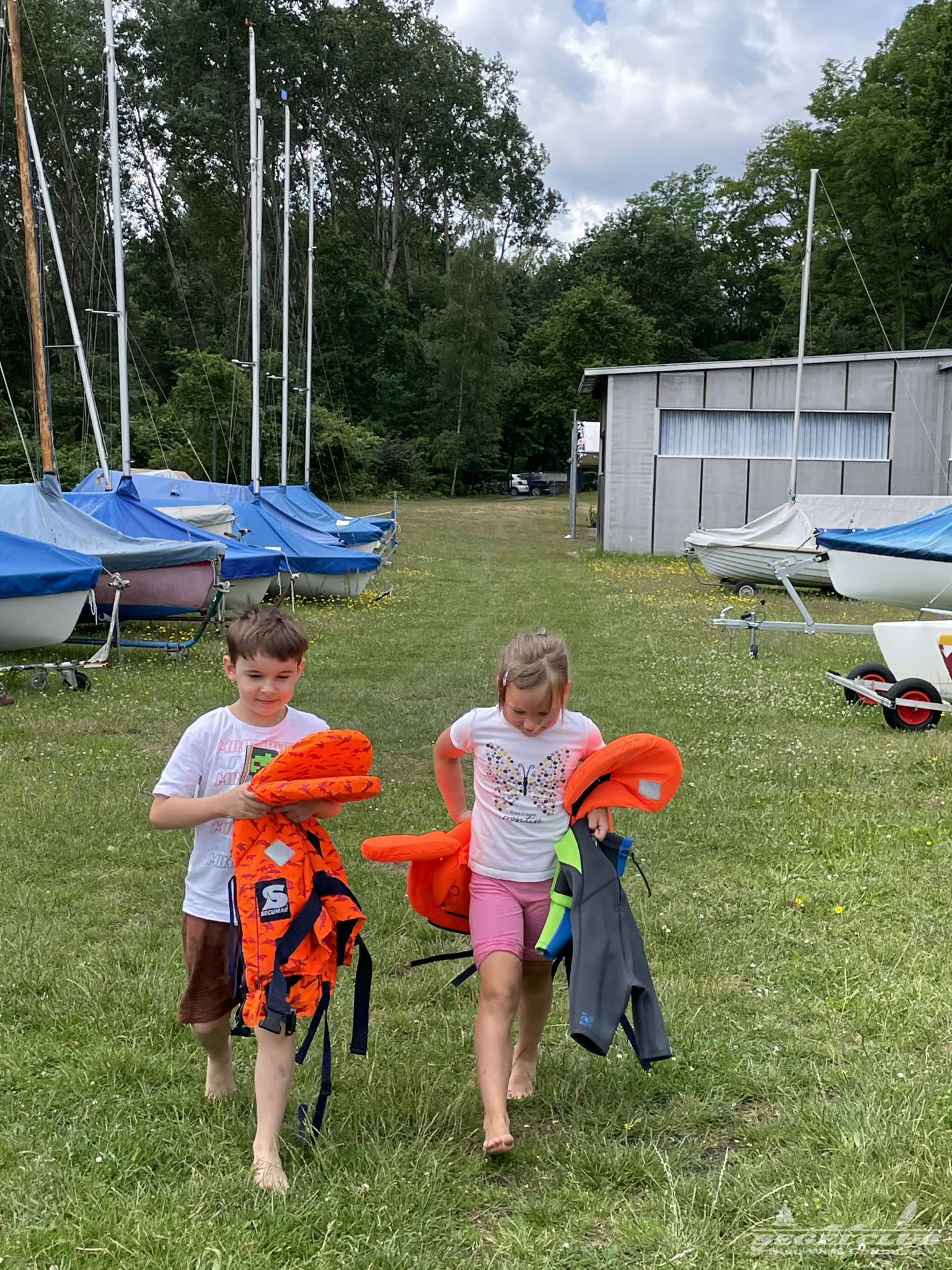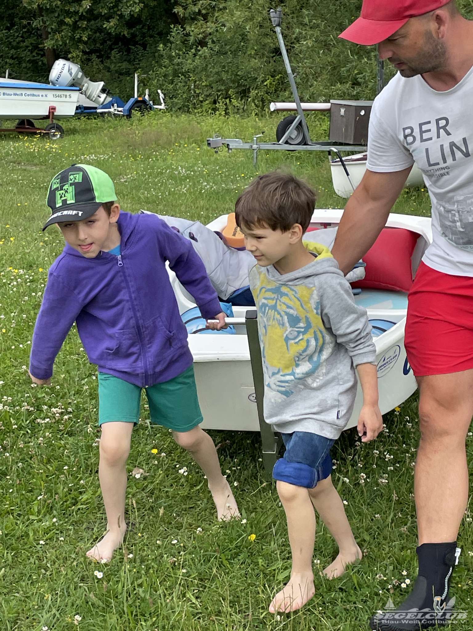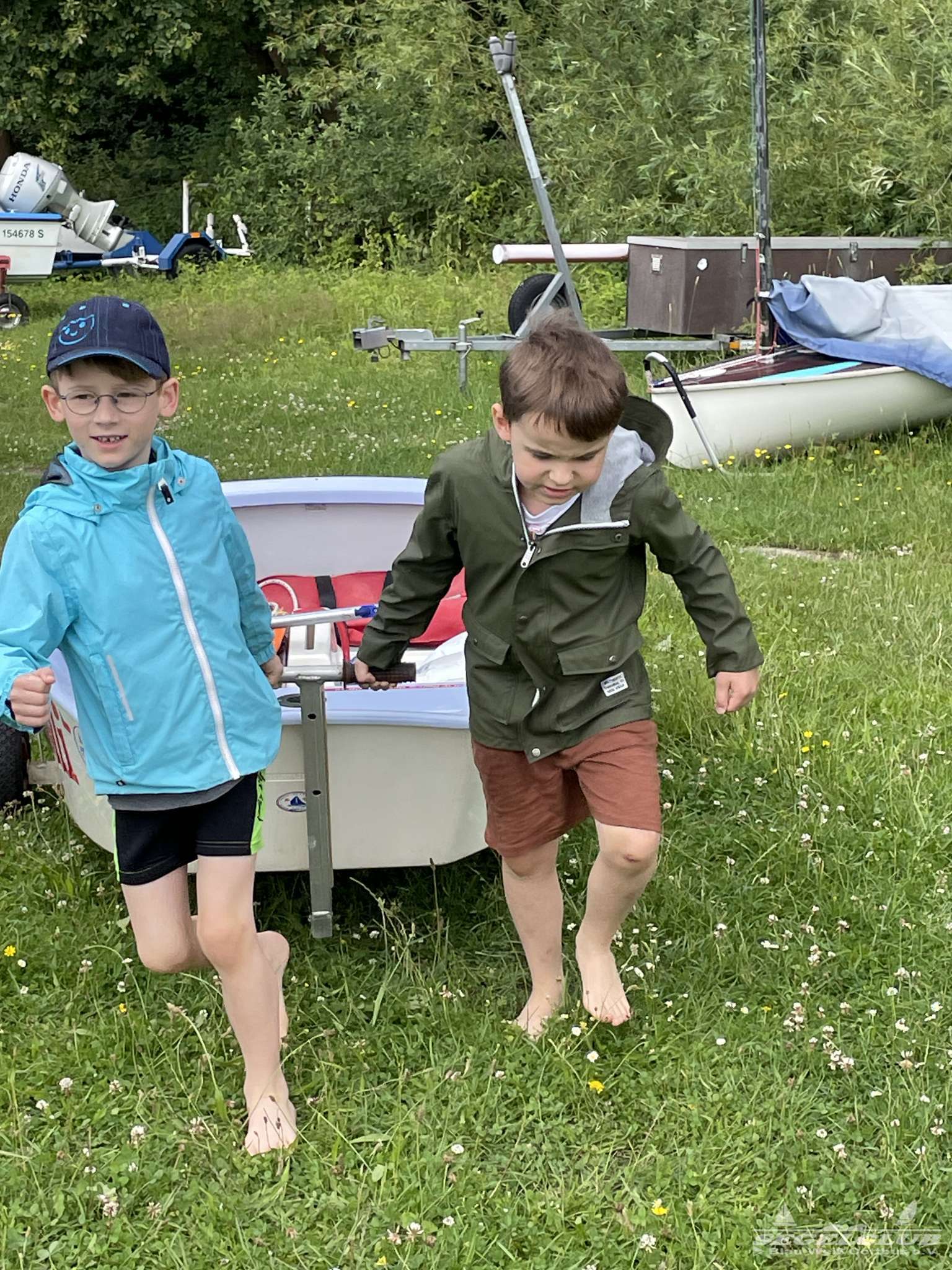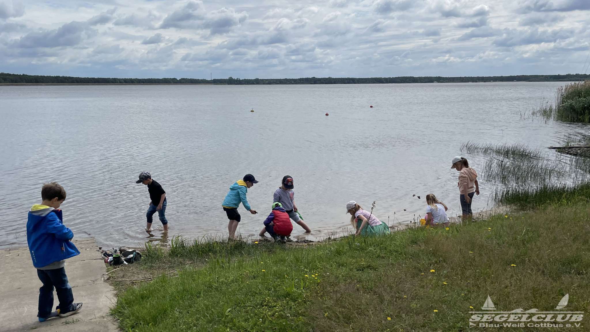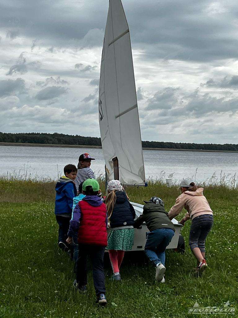 Früh um 9 Uhr trafen sich acht aufgeregte Kinder der Kindergartengruppe „Grashüpfer“ zusammen mit ihrer Kindergärtnerin Uta und einigen Müttern am Segelclub. Die Sonne strahlte vom Himmel und versprach einen wundervollen Tag voller Abenteuer und Segelspaß.