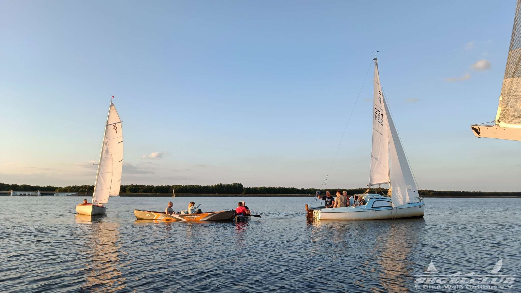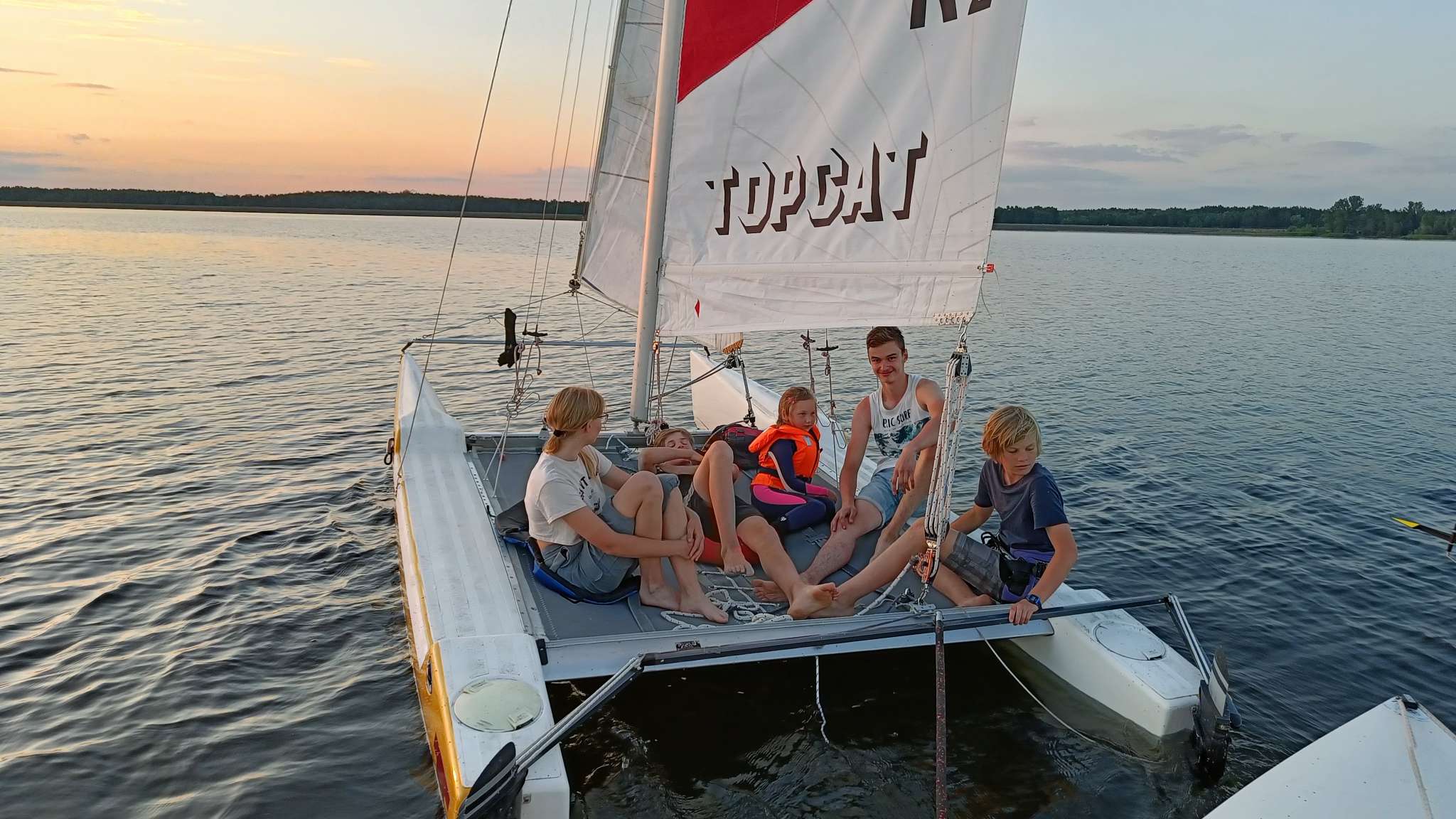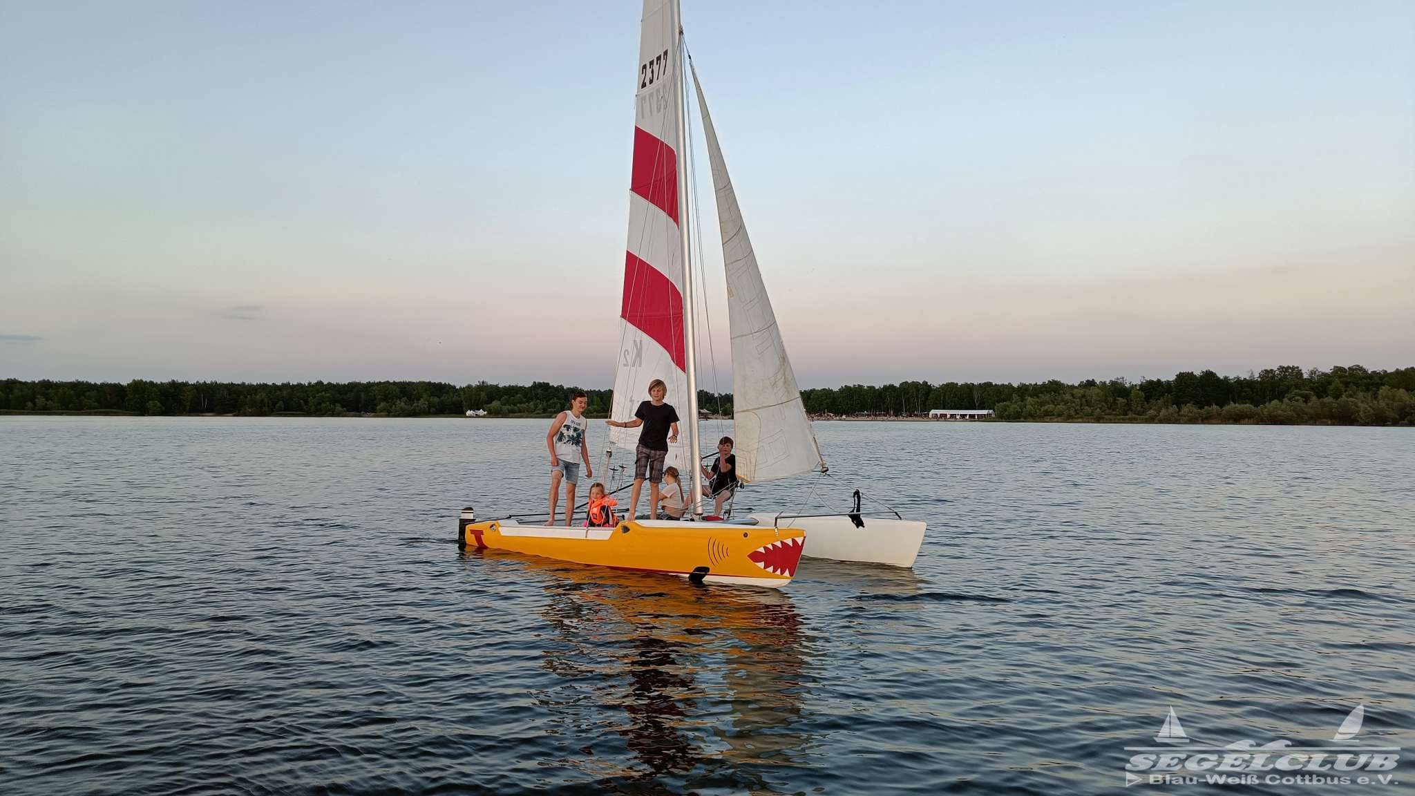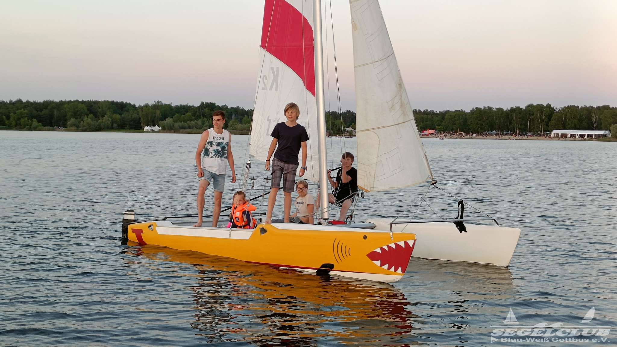 Pünktlich um 20 Uhr legten wir ab und fuhren mit einer Vielzahl von Booten, darunter auch der neue K2 Katamaran, auf den See. Die Jugend war begeistert von dem neuen Boot, auf dem man sich herrlich lümmeln und entspannen konnte. Es war offensichtlich ein großer Hit bei den Kindern.