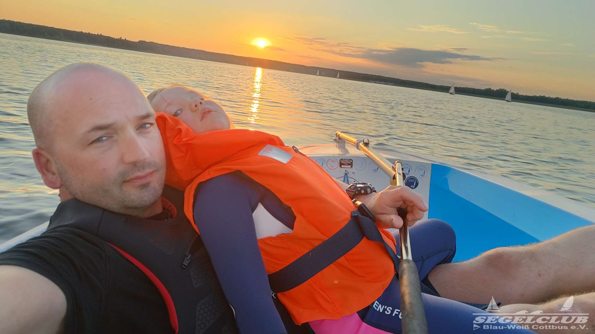 Gemeinsam steuerten wir in Richtung Bagenz und bewunderten den malerischen Ausblick auf das Wasser. Die Sonne, die langsam den Horizont berührte, tauchte die Landschaft in ein warmes goldenes Licht. Es war ein wahrhaft magischer Moment, den wir gemeinsam erleben durften.