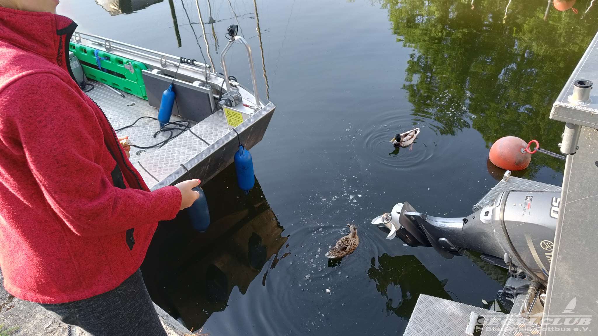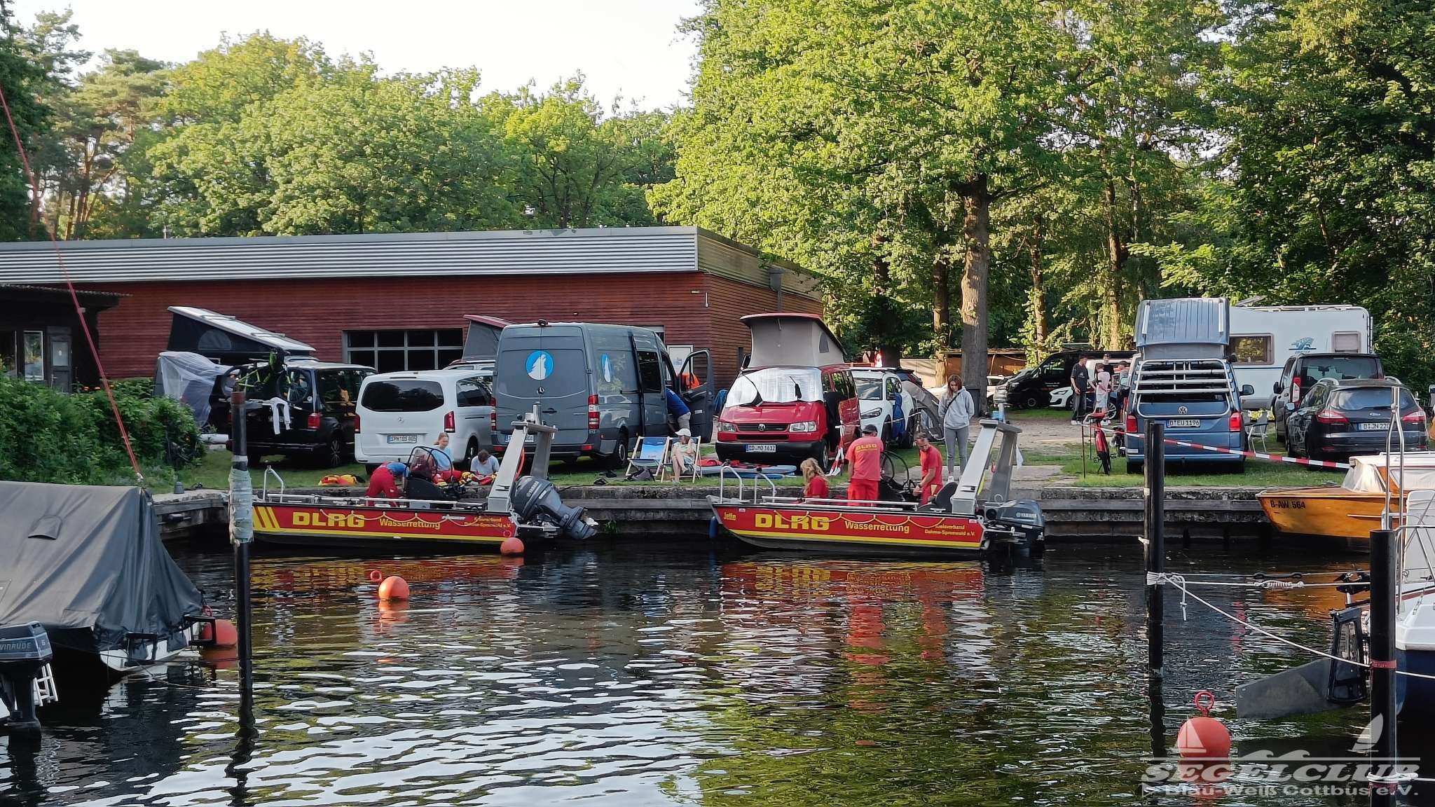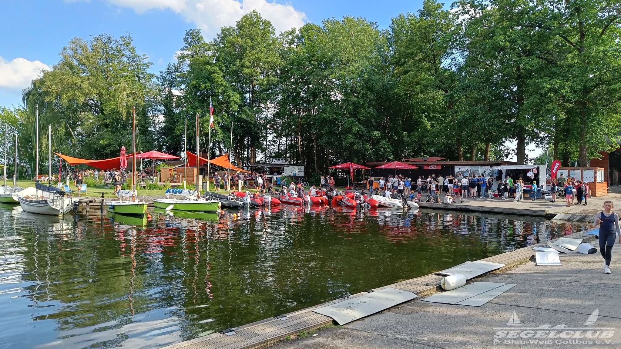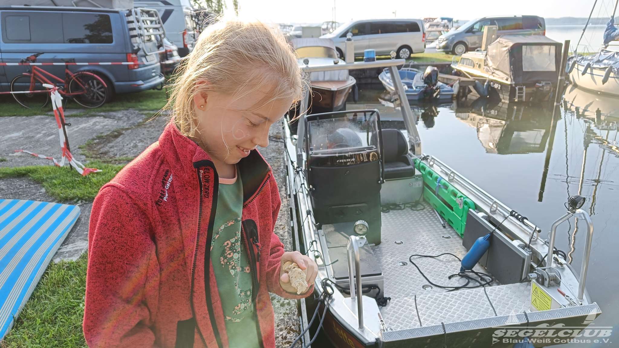 Am nächsten Morgen konnte man in wunderbaren verschließbaren Outdoor Duschen duschen gehen, und danach direkt in die Mensa zum Frühstück gehen. Das Frühstück war reichhaltig und einfach super. Nach dem Frühstück wurde es ein wenig hektisch, da man natürlich Sorge hatte nicht rechtzeitig am Start zu erscheinen bei so vielen Booten. Witzig war, das eigentlich alle Boote an einer Stelle eingelassen wurden. Dann wurden diese am Steg weitergereicht und so verteilte sich das ganze wieder. Aber an der Einfahrt, war ein ständiges „Boot rein – Wagen raus“ in ständiger Wiederholung.