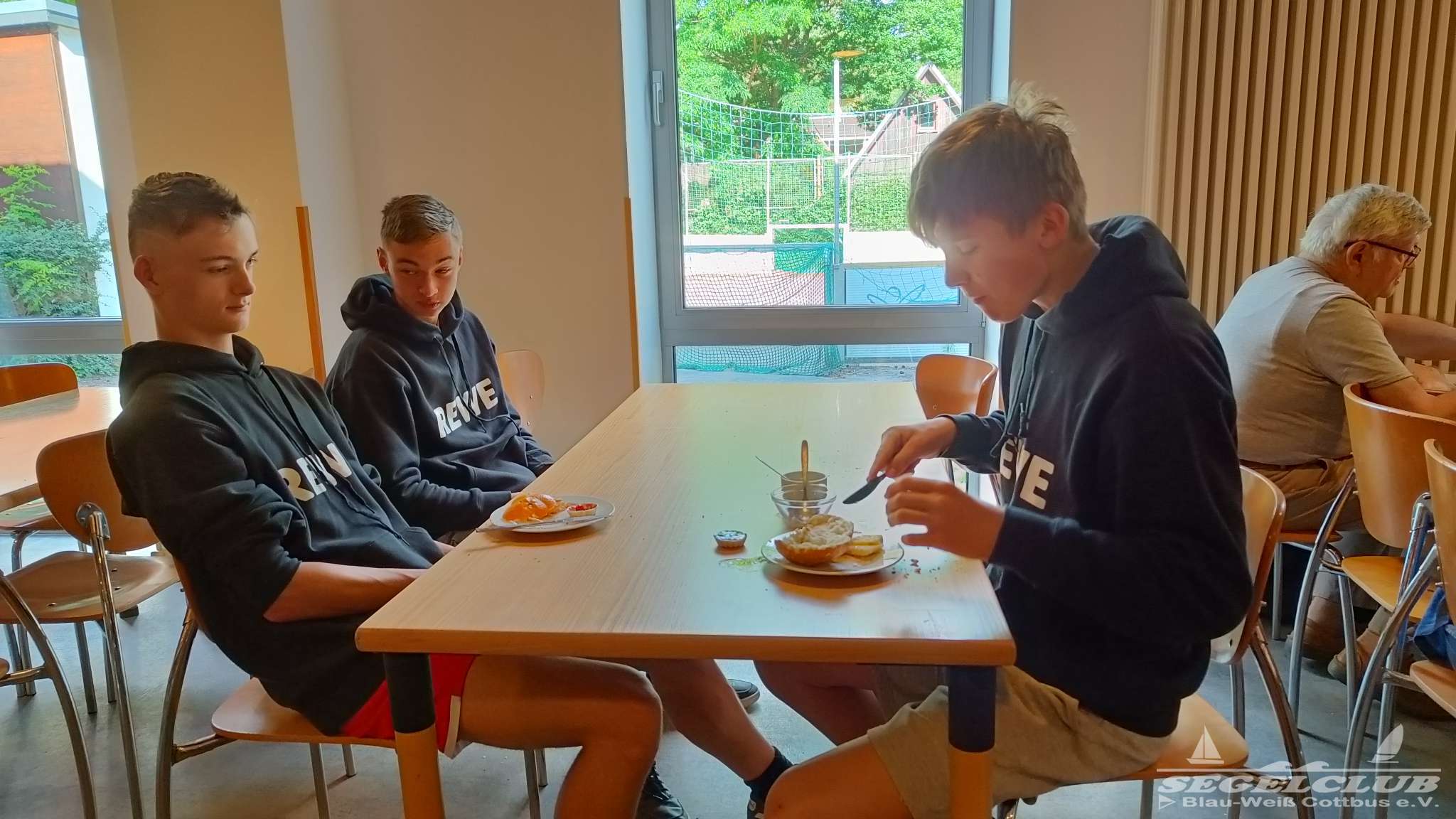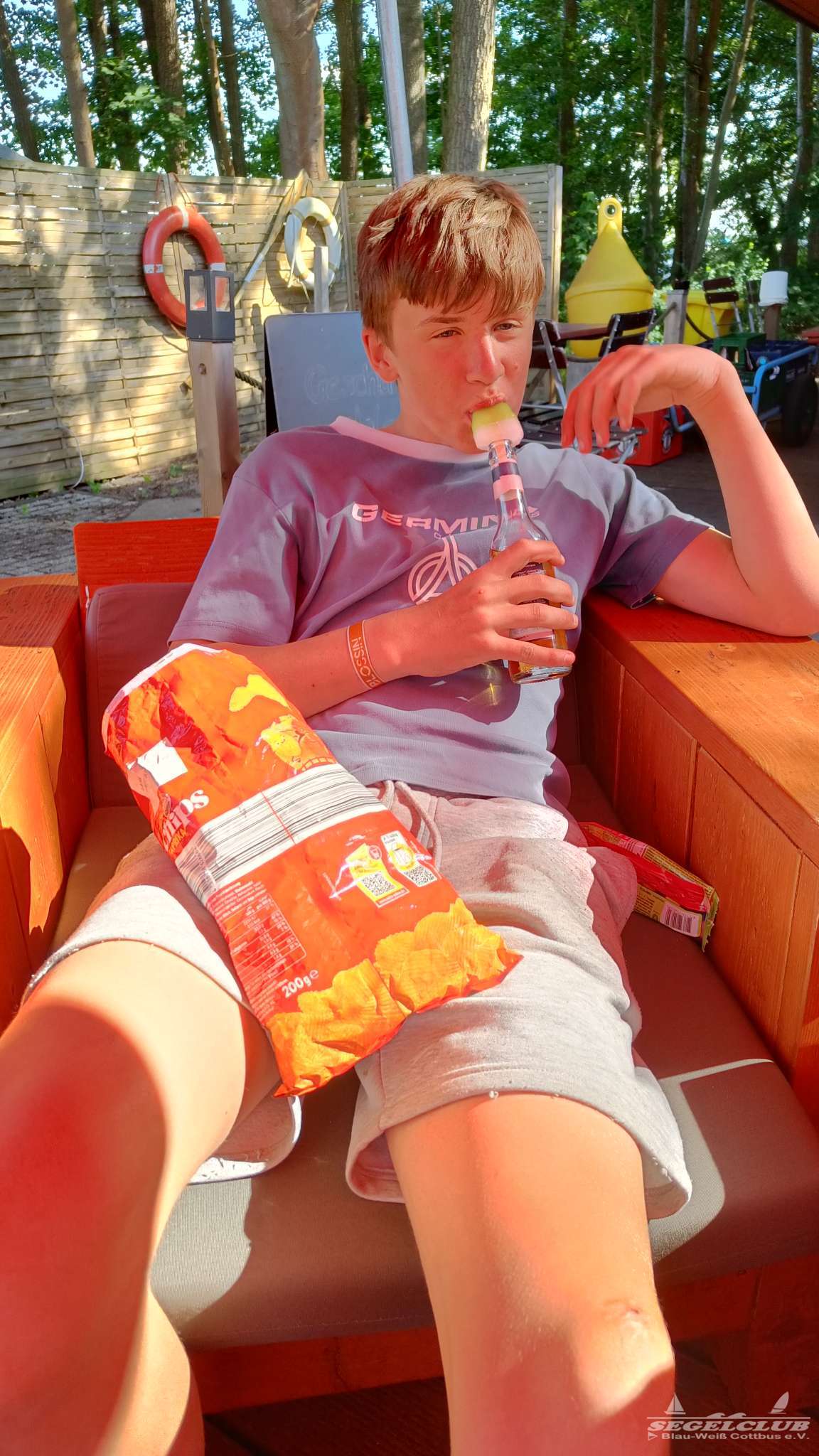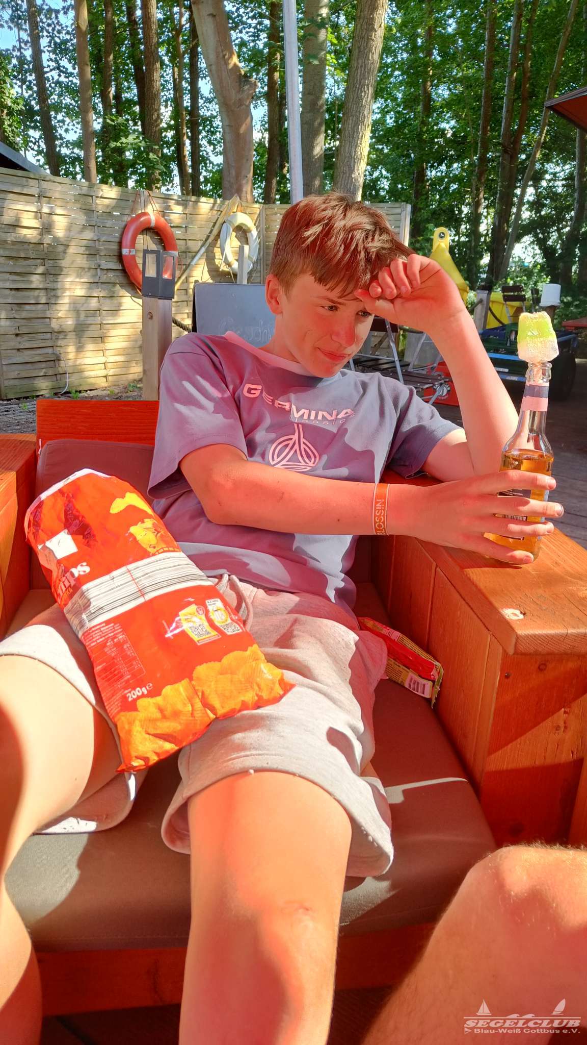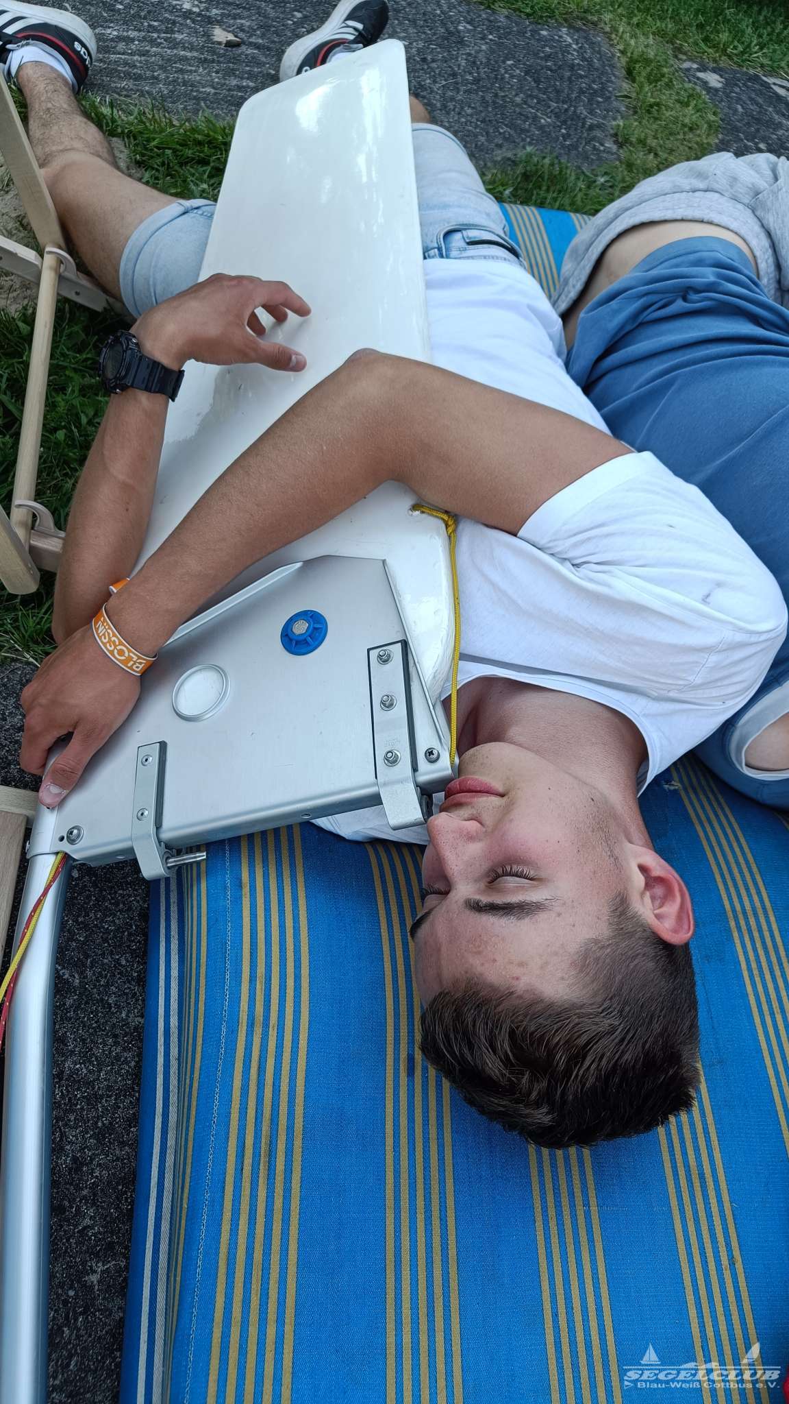 Dort angekommen erwartete uns eine hoch durchorganisierte Atmosphäre. Wirklich hunderte von jugendlichen Seglern, Kindern, Betreuern und Sicherheitskräften wuselten um viel zu eng geparkte Boote umher. Wir bekamen ein lauschiges Plätzchen am Rand für unsere Busse, in welchen wir als Betreuer unterkamen und begannen dann mit dem Abräumen der Boote. Das Gelände dort war einfach toll. Man hatte einen riesen betonierten Platz auf welchem man in aller Ruhe ohne im Staub und Dreck umzutrampeln aufbauen konnte. Die Optisegel konnten aufgebaut in einer großen Halle untergebracht werden. Die Kinder und Jugendlichen bauten ihre Zelte auf.