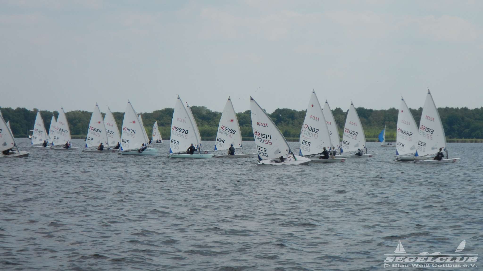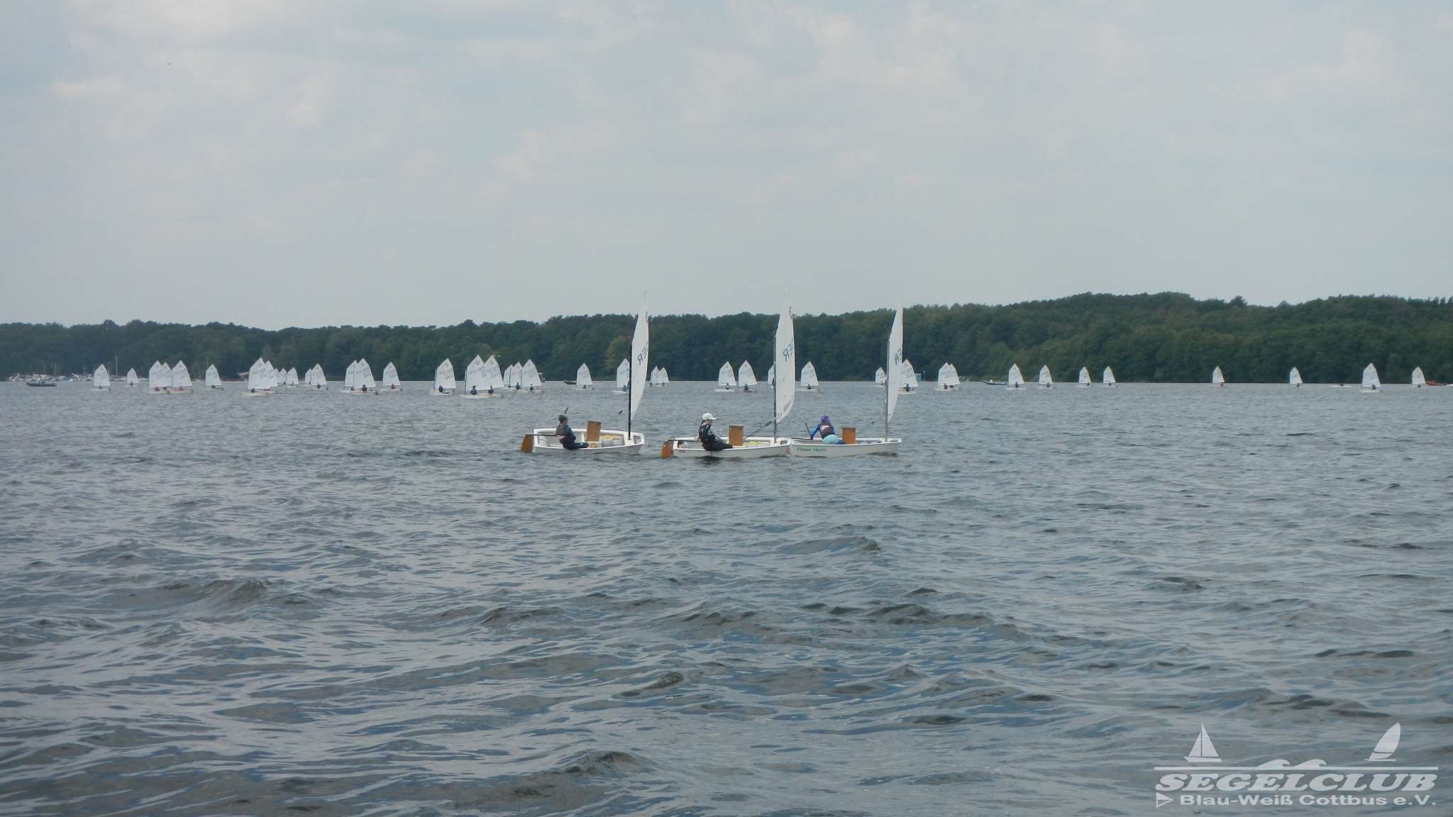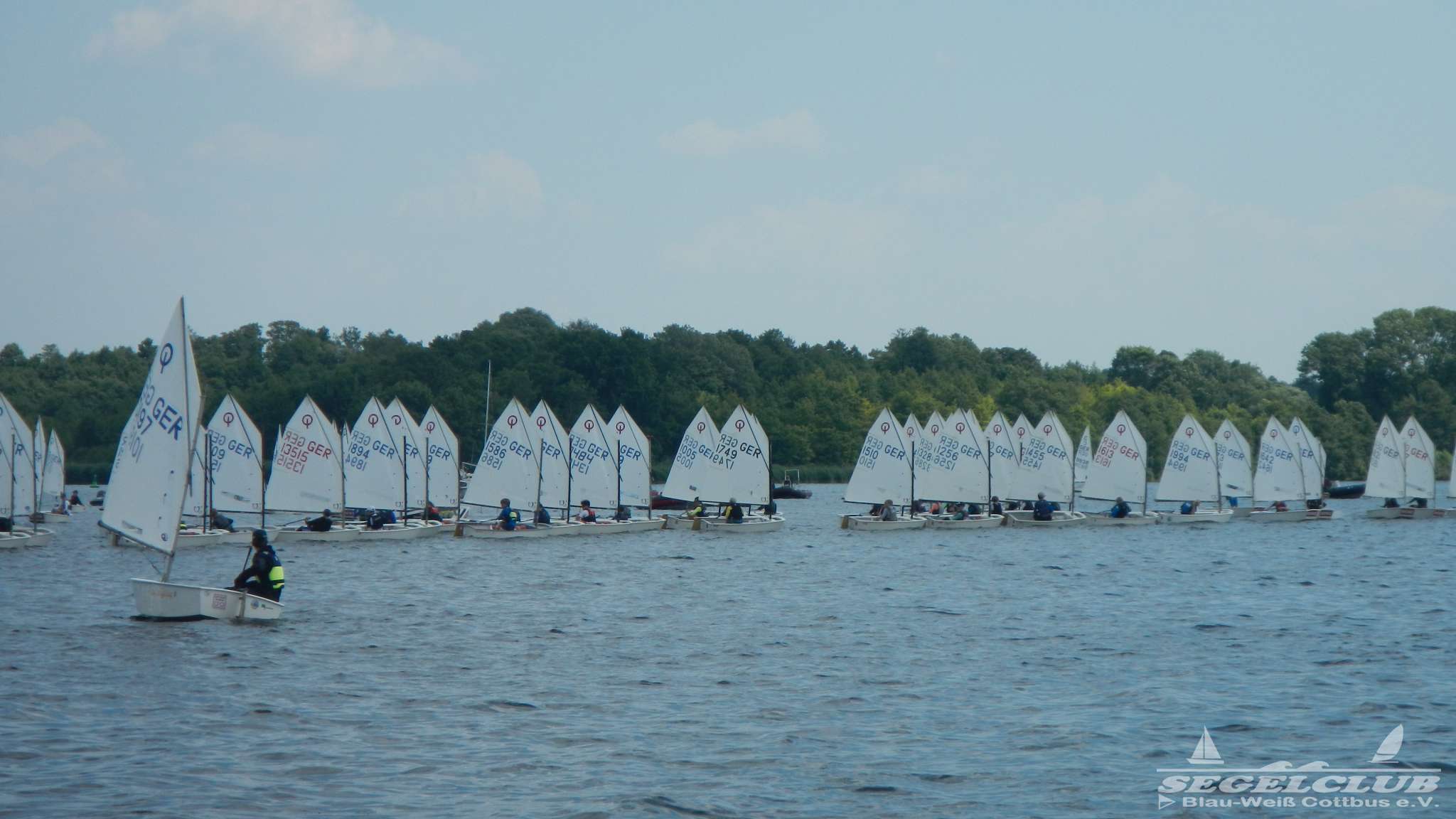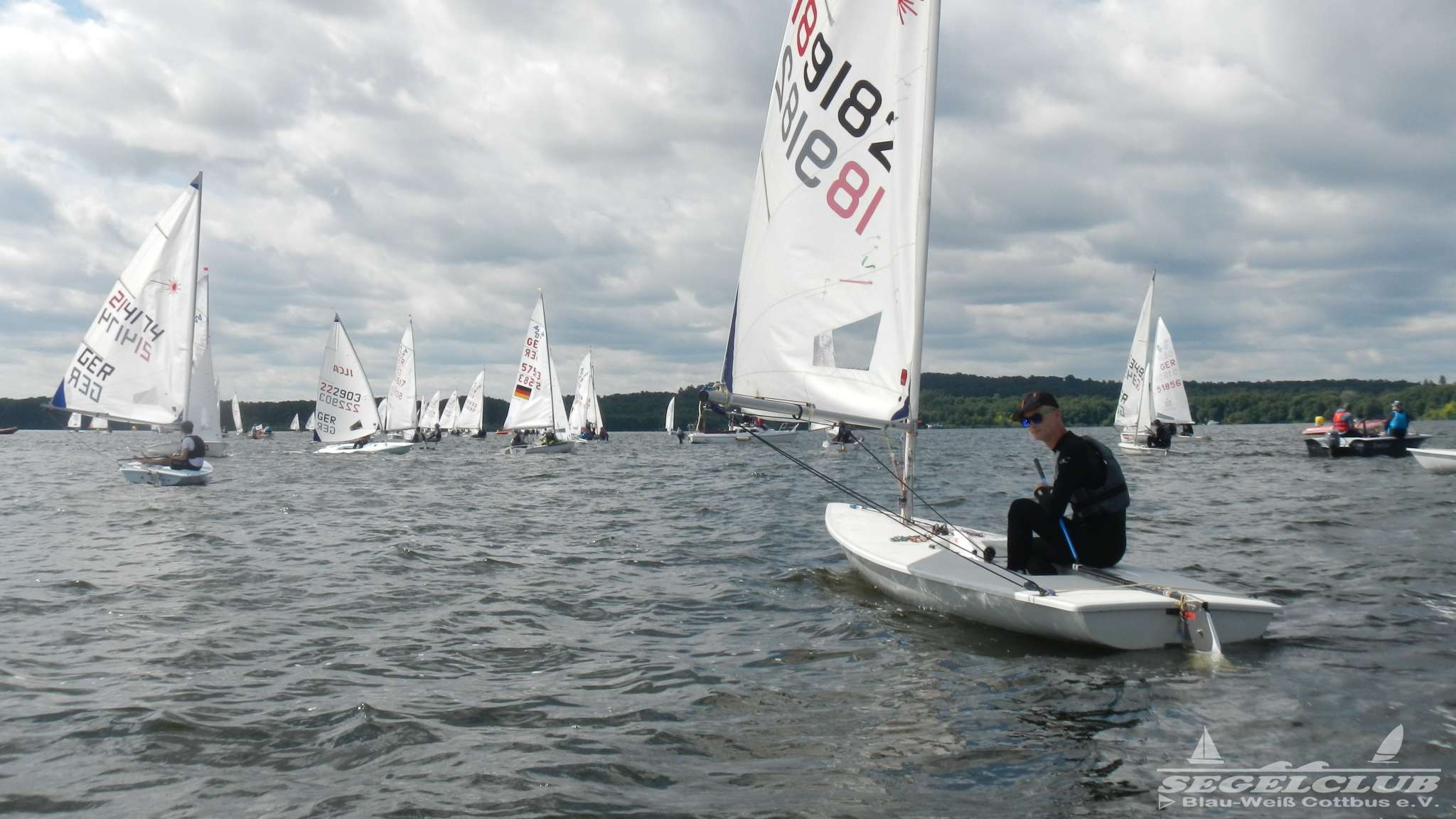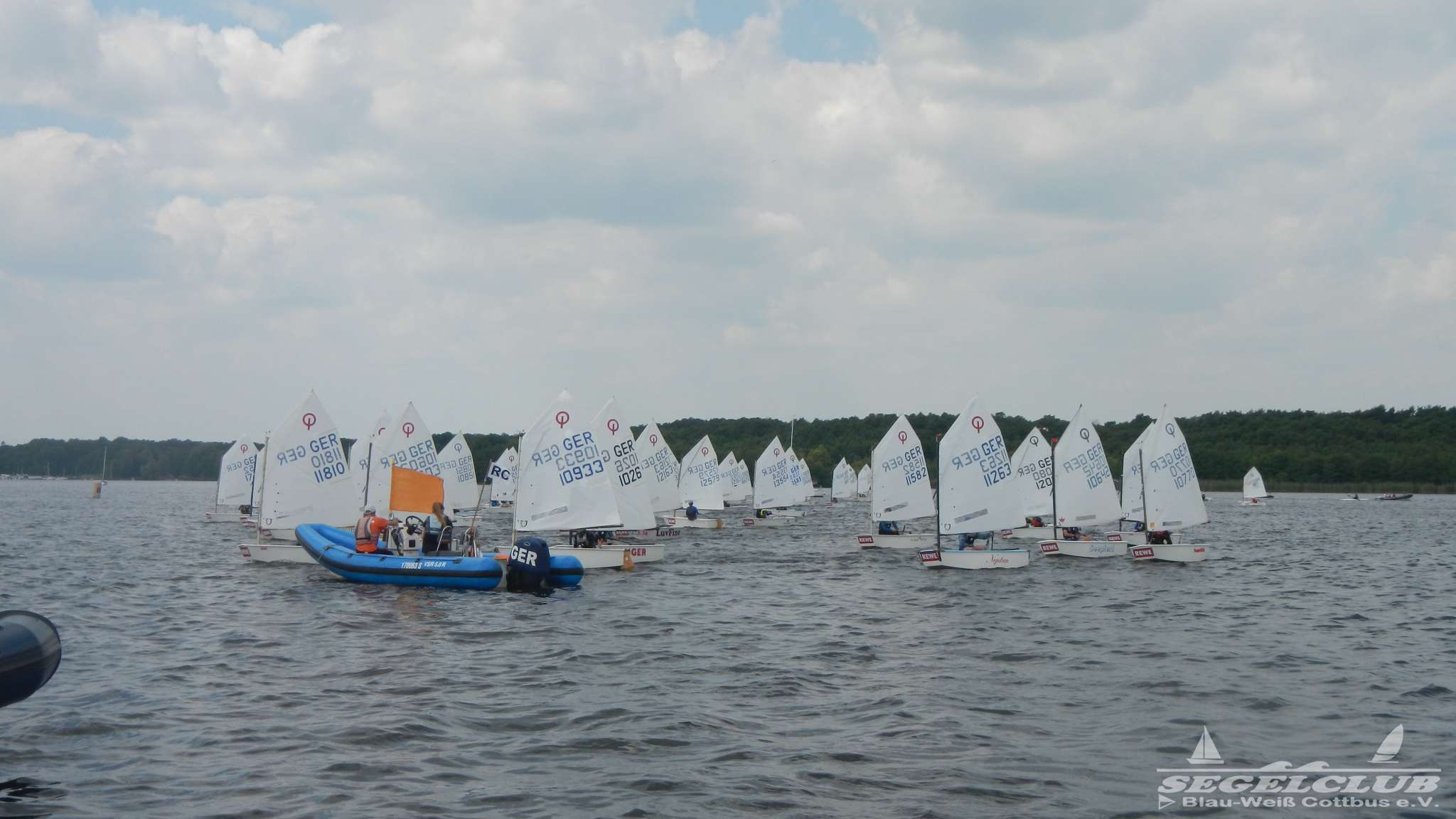 Unsere ILCA Jungs waren guter Dinge und so konnte die Regatta starten. Bei den Optis, die in einem anderen Feld und auch anderem Bereich des See starteten, sah es noch krasser aus. Das Opti Feld mit 92 OptiA und 68 OptiB Startern war einfach riesig für jemanden aus unserer Region. Sicher gibt es bestimmt noch größere Felder, aber das war schon eine Hausnummer.