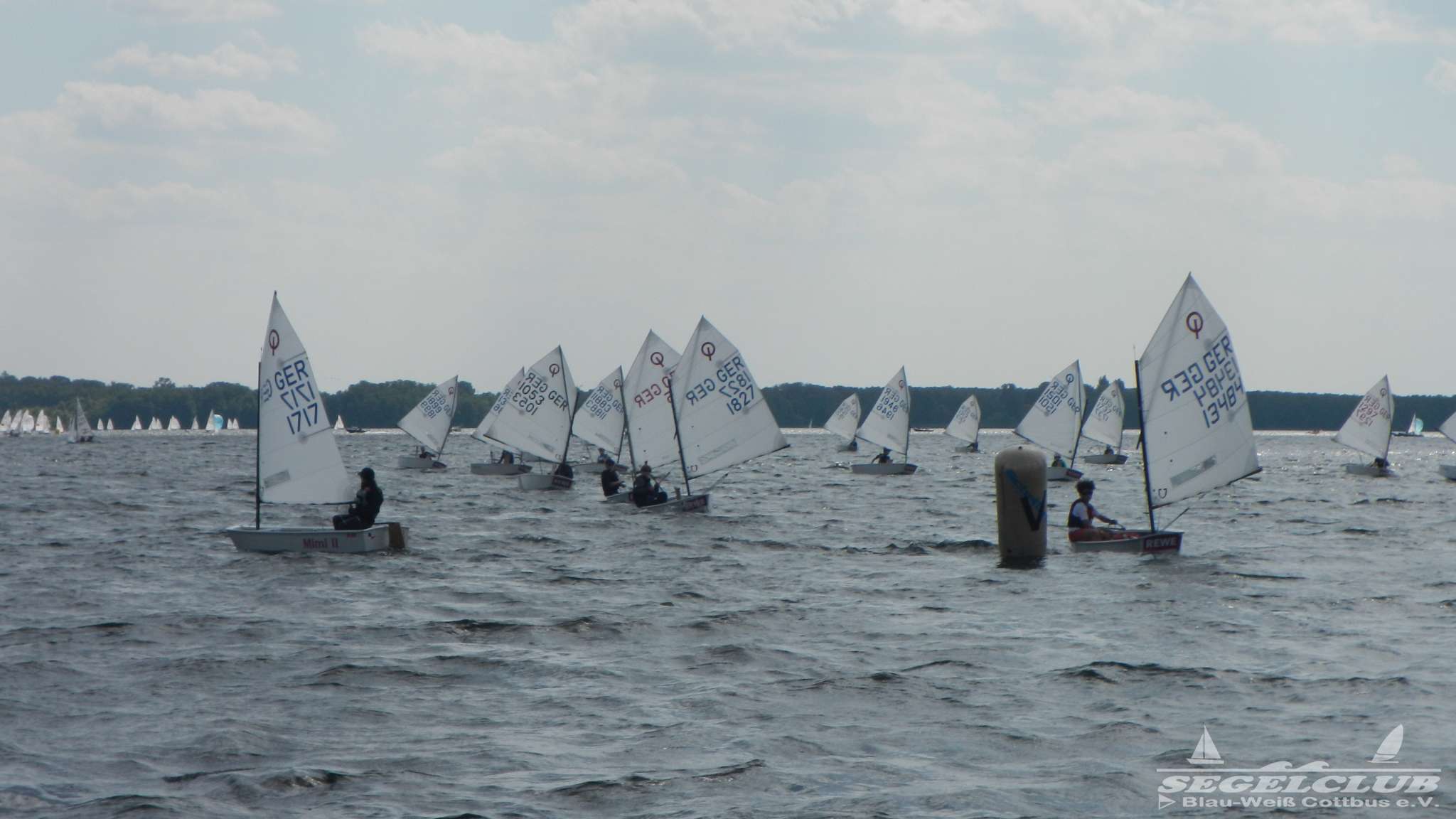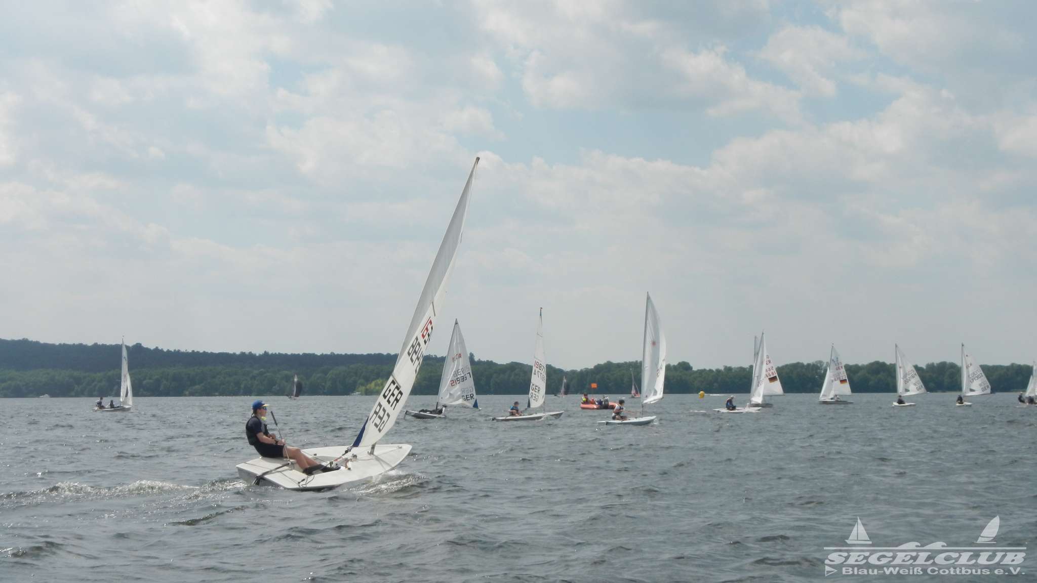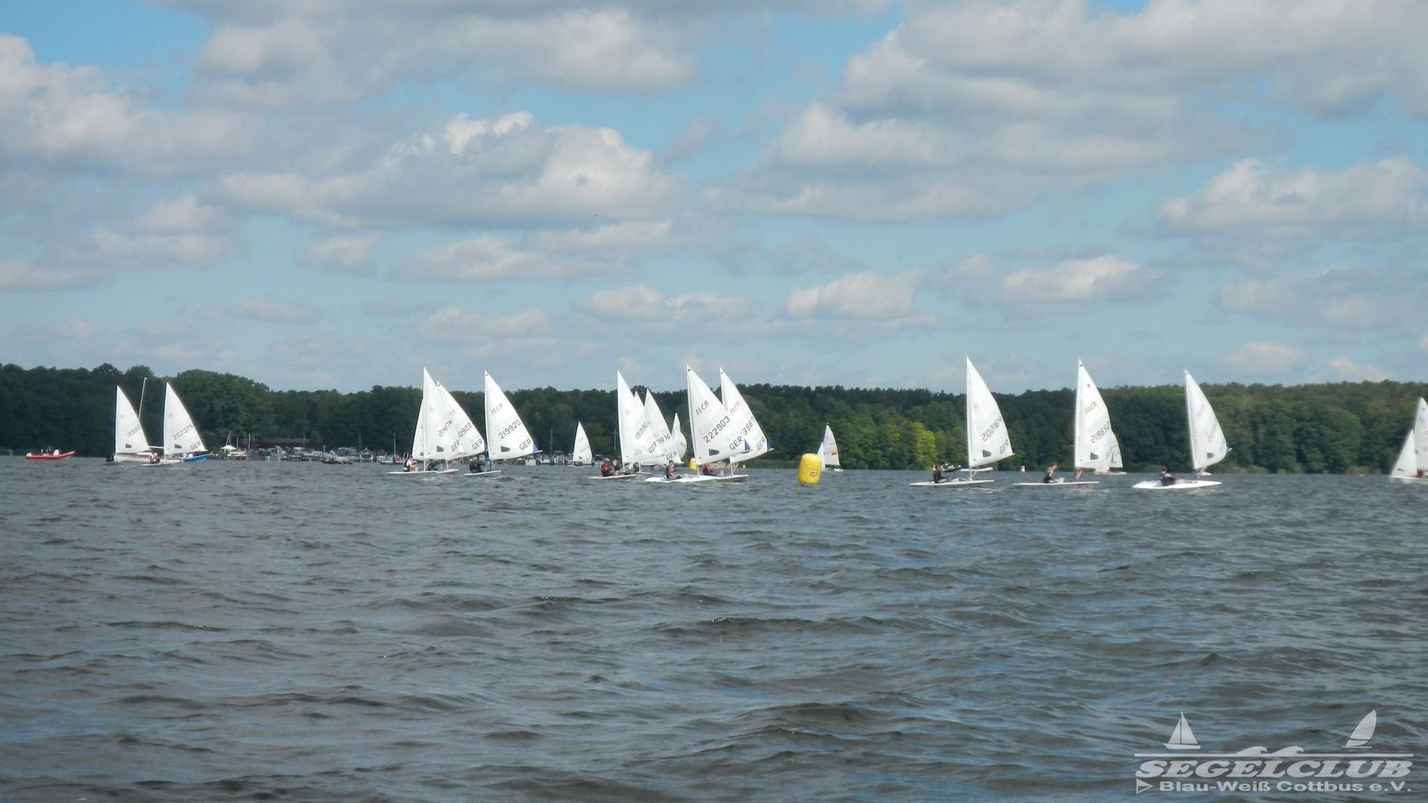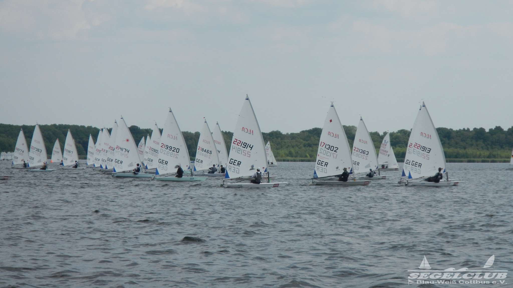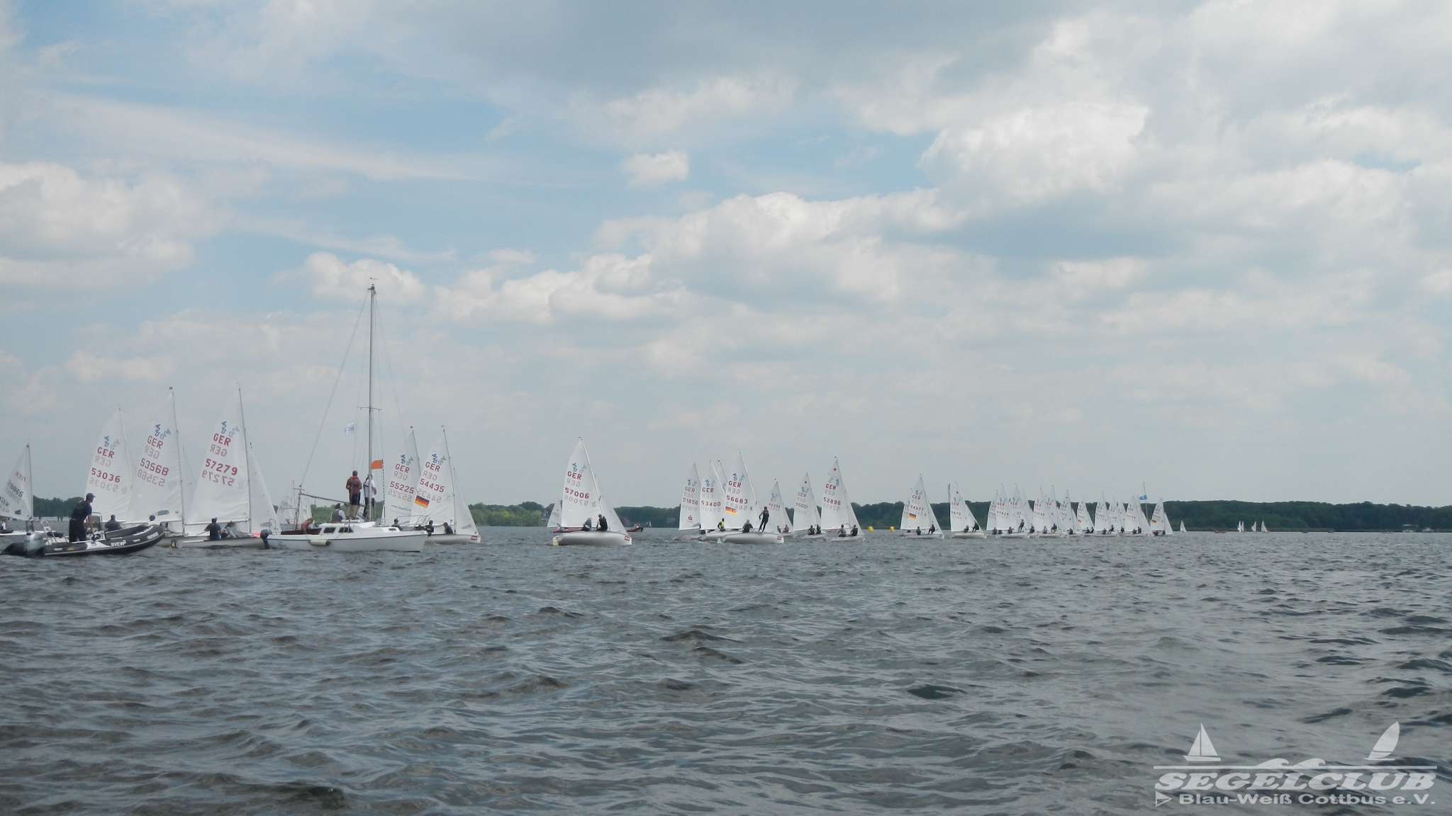 Unsere ILCA Jungs waren guter Dinge und so konnte die Regatta starten. Bei den Optis, die in einem anderen Feld und auch anderem Bereich des See starteten, sah es noch krasser aus. Das Opti Feld mit 92 OptiA und 68 OptiB Startern war einfach riesig für jemanden aus unserer Region. Sicher gibt es bestimmt noch größere Felder, aber das war schon eine Hausnummer.