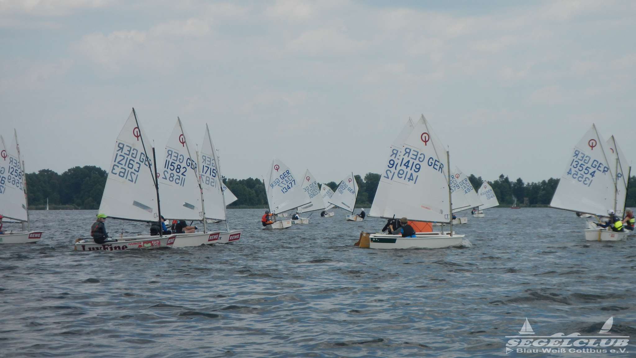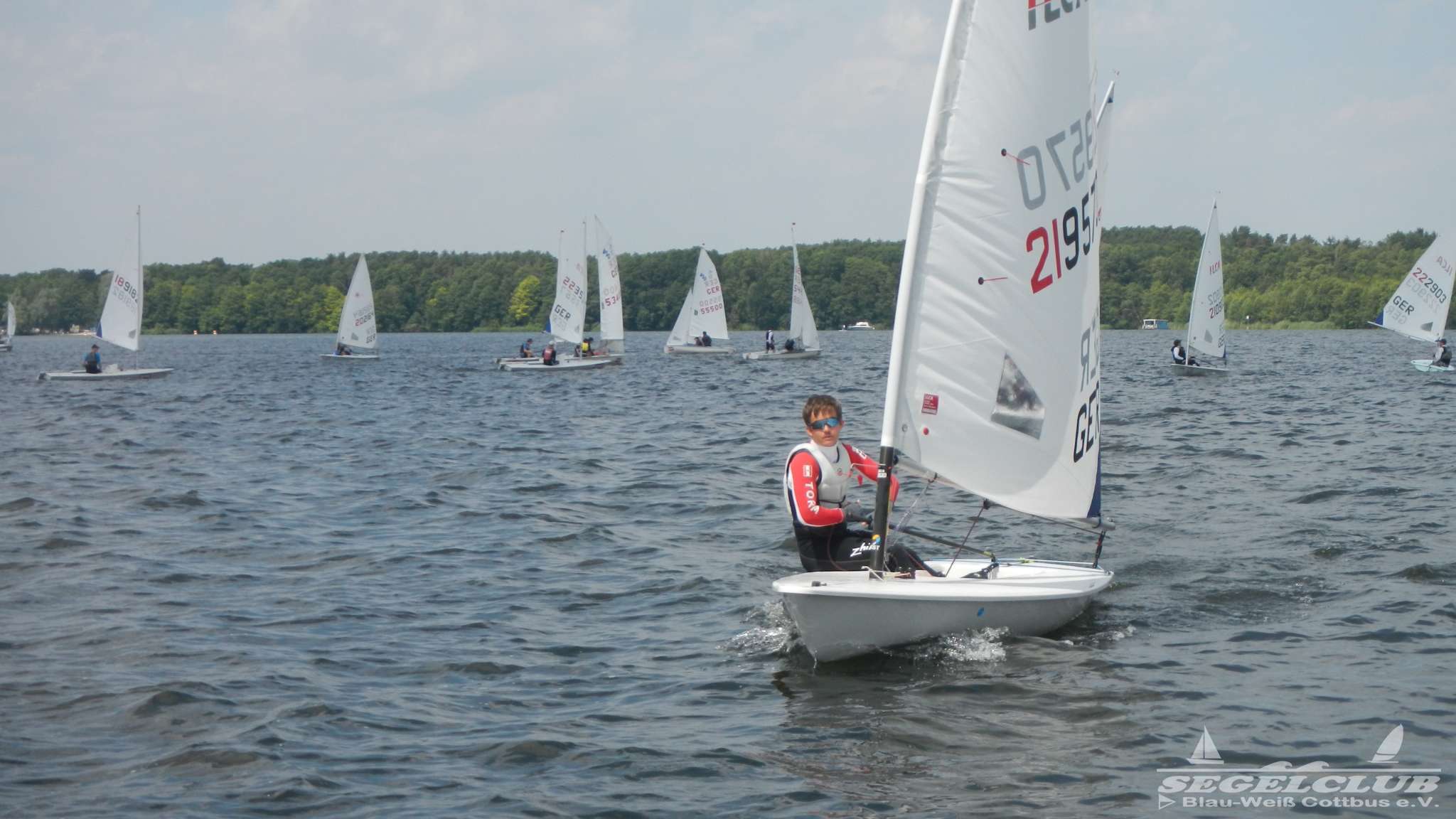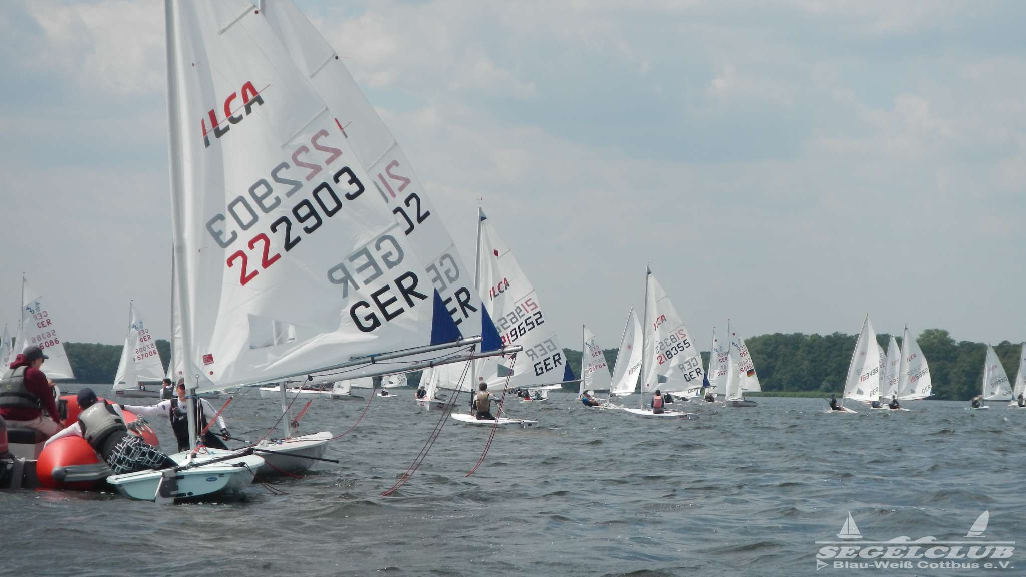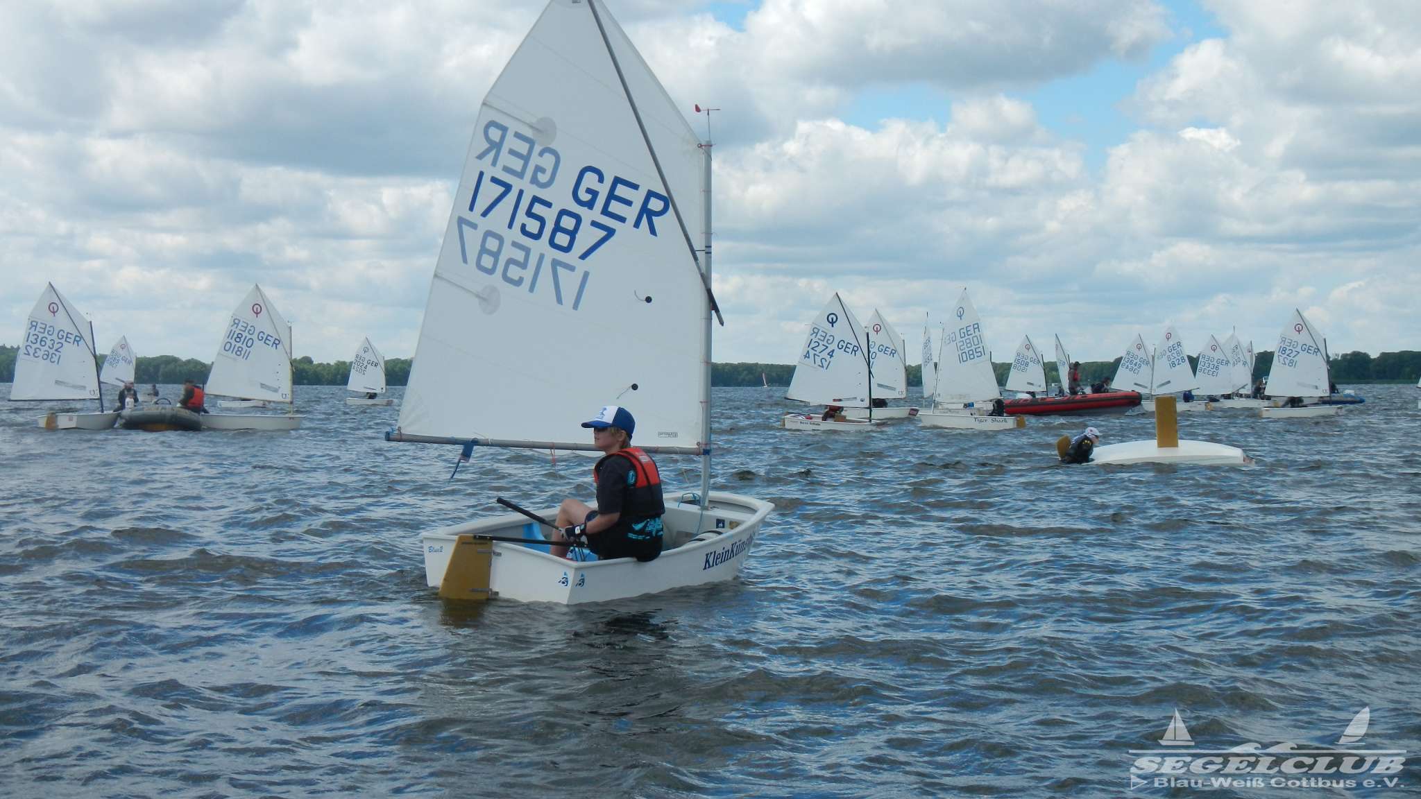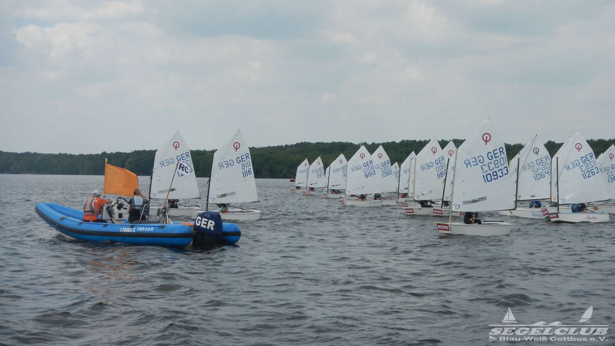 Unsere ILCA Jungs waren guter Dinge und so konnte die Regatta starten. Bei den Optis, die in einem anderen Feld und auch anderem Bereich des See starteten, sah es noch krasser aus. Das Opti Feld mit 92 OptiA und 68 OptiB Startern war einfach riesig für jemanden aus unserer Region. Sicher gibt es bestimmt noch größere Felder, aber das war schon eine Hausnummer.