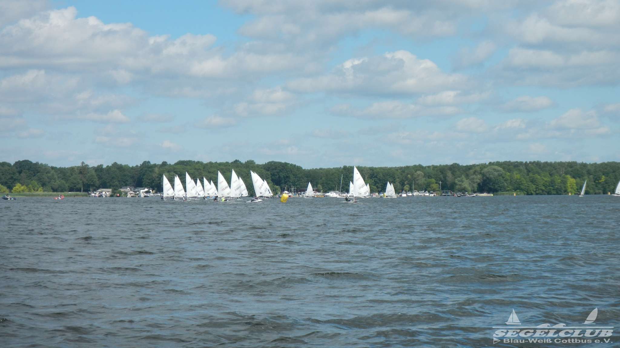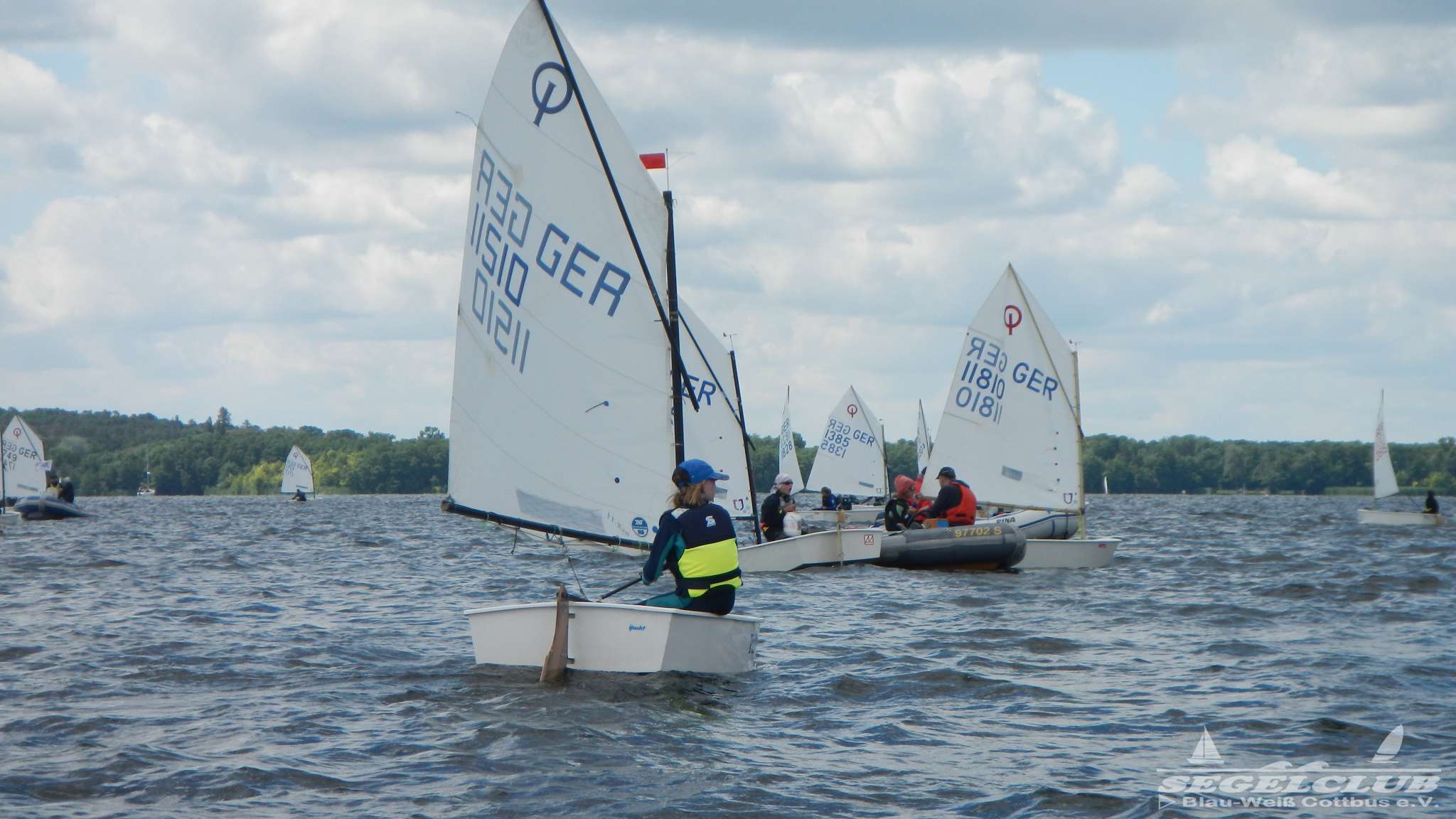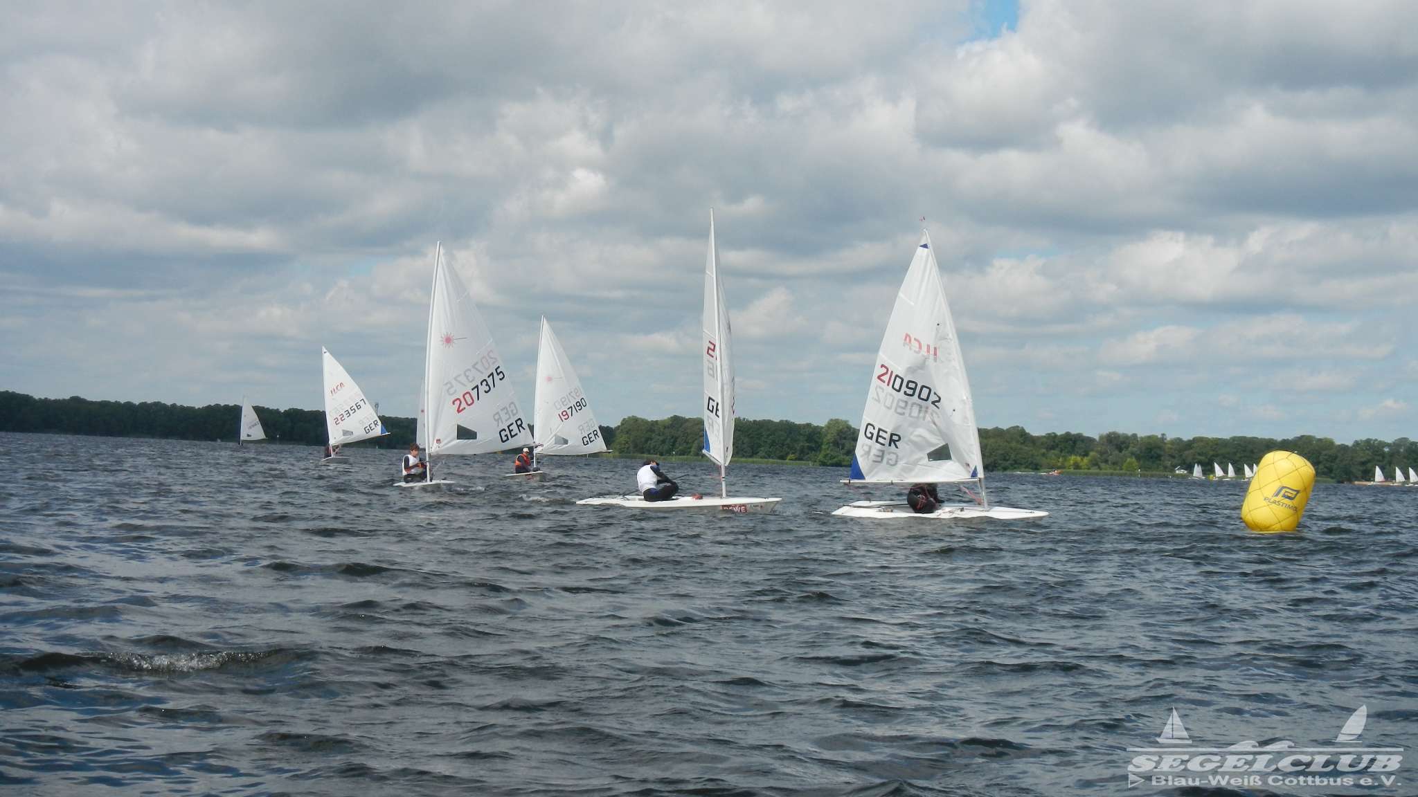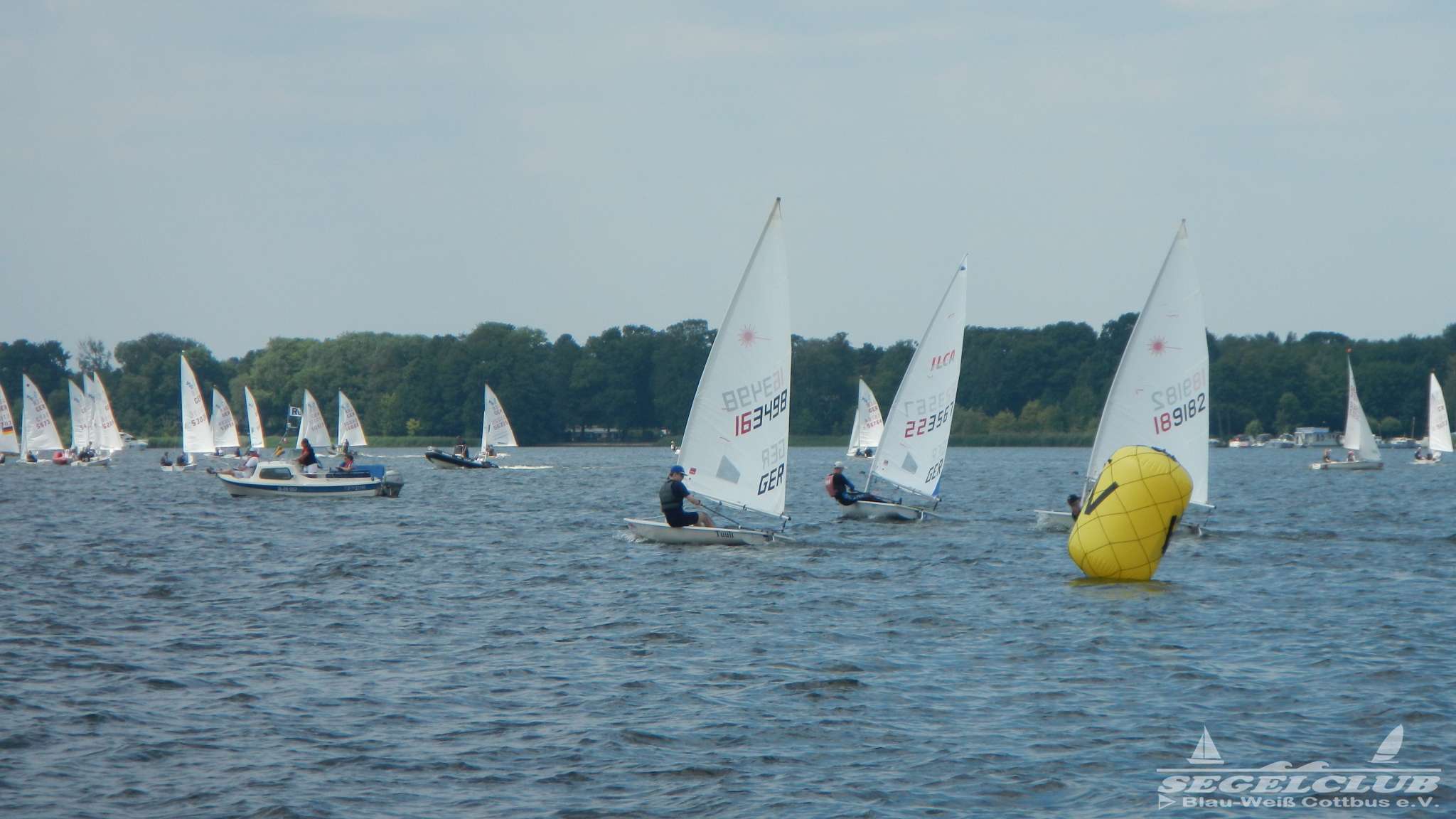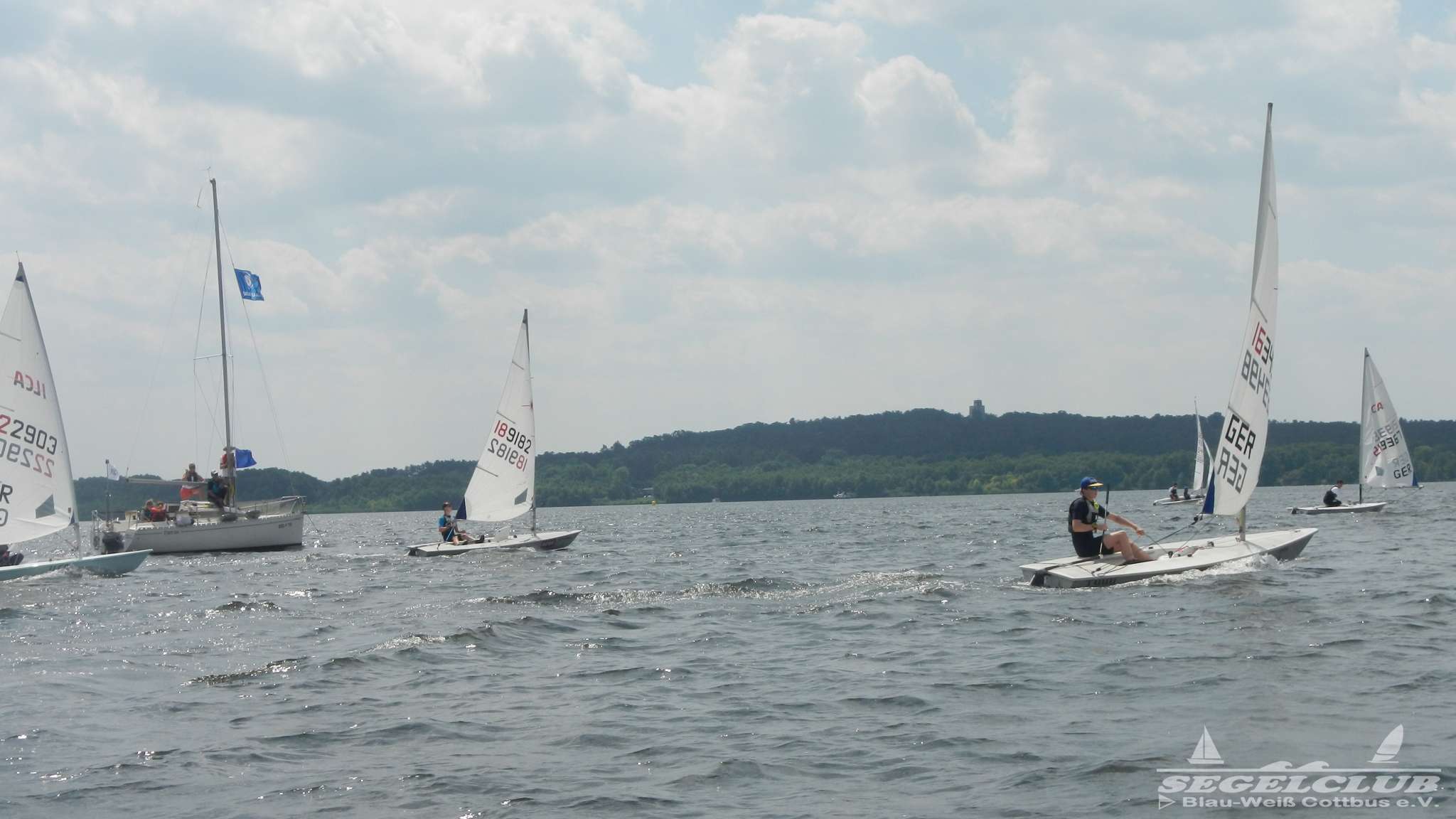 Unsere ILCA Jungs waren guter Dinge und so konnte die Regatta starten. Bei den Optis, die in einem anderen Feld und auch anderem Bereich des See starteten, sah es noch krasser aus. Das Opti Feld mit 92 OptiA und 68 OptiB Startern war einfach riesig für jemanden aus unserer Region. Sicher gibt es bestimmt noch größere Felder, aber das war schon eine Hausnummer.