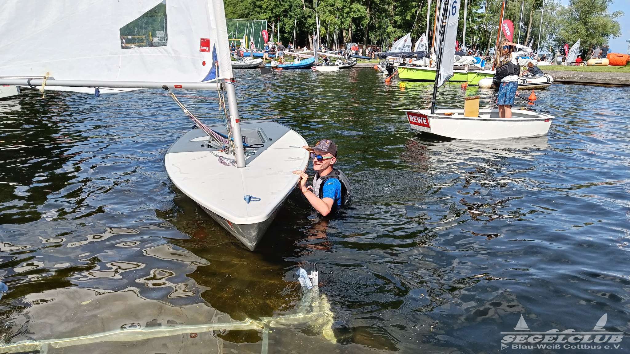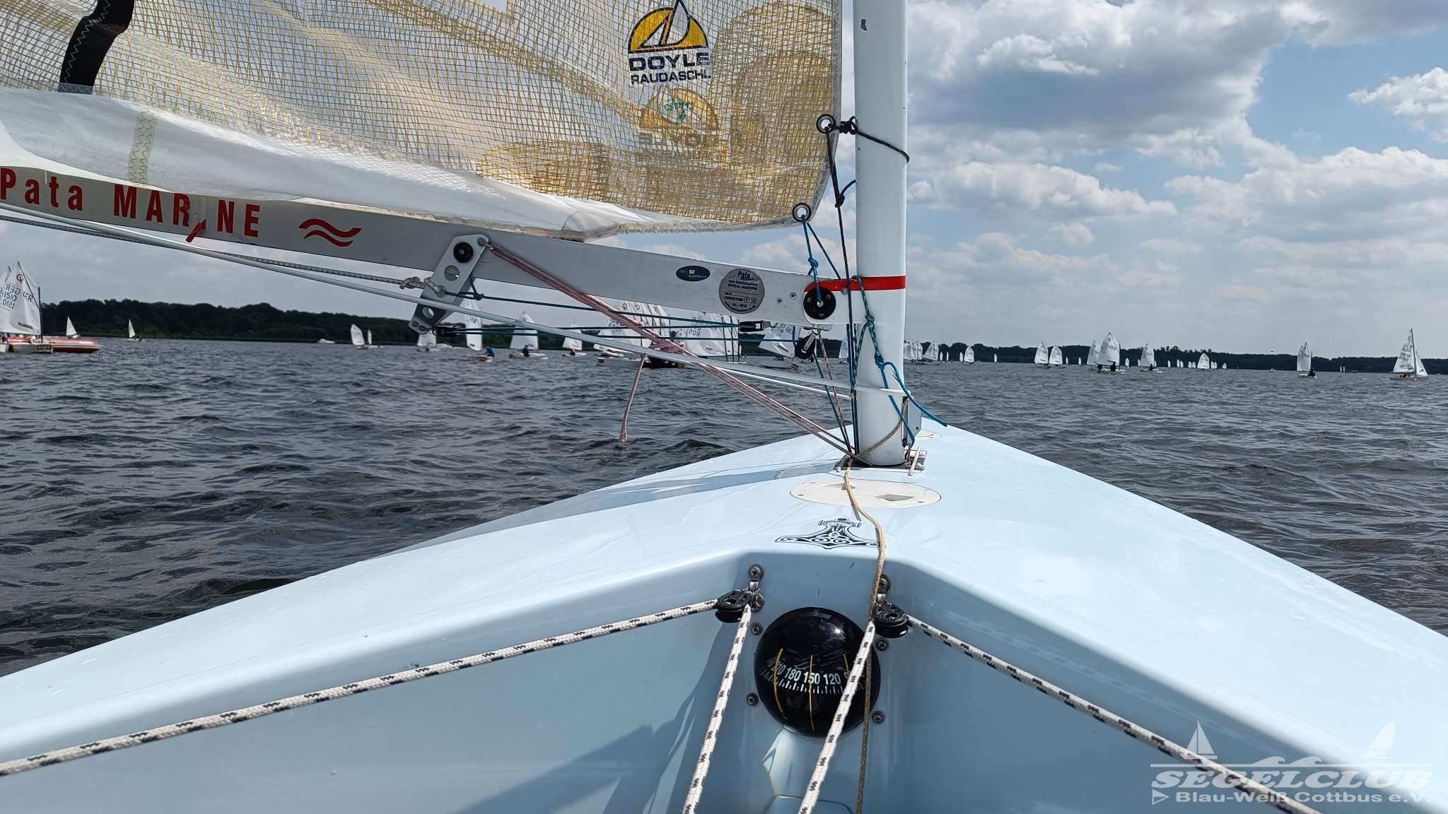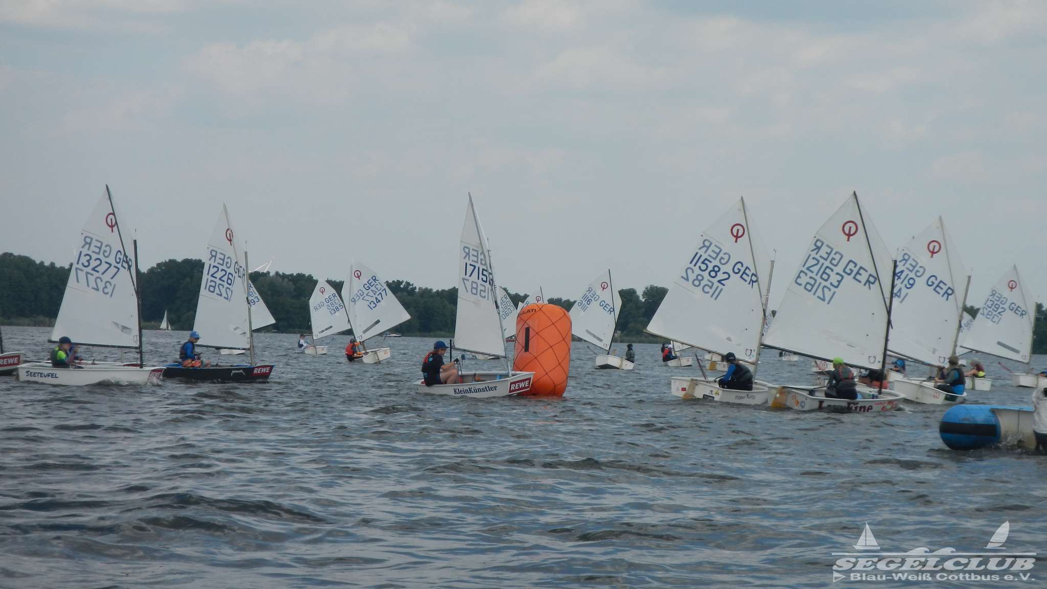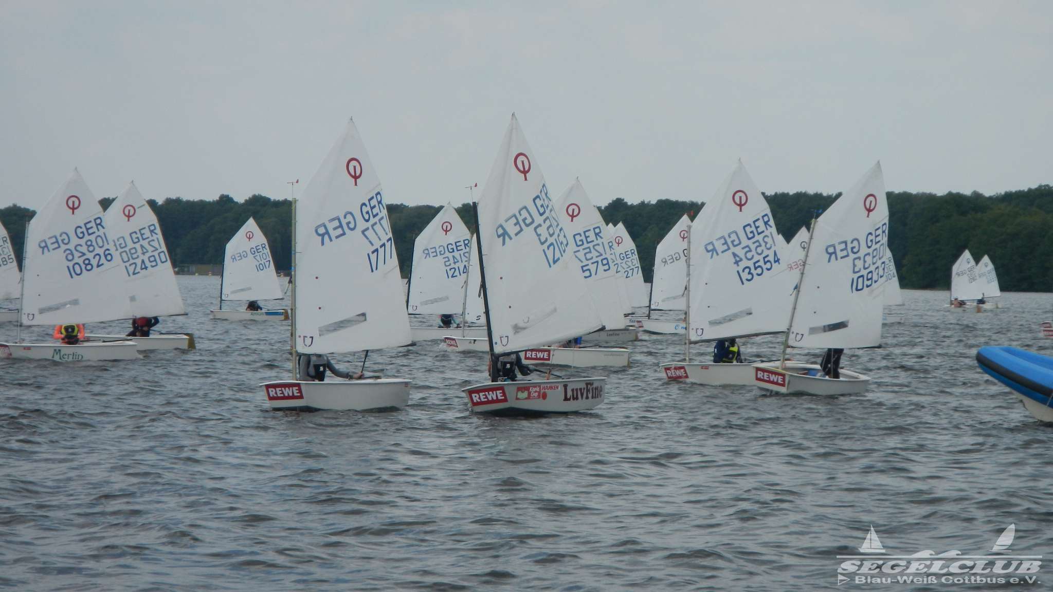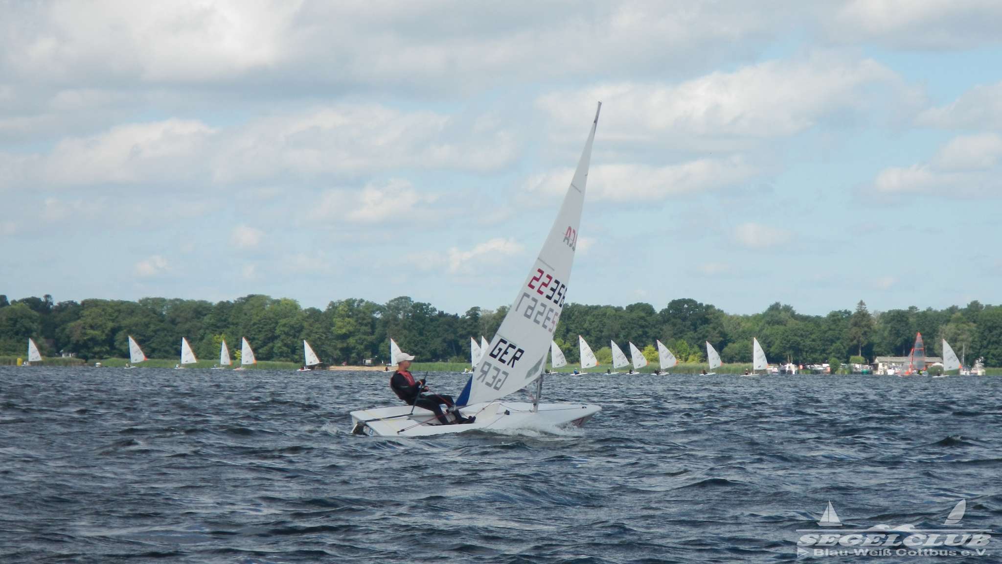 Unsere ILCA Jungs waren guter Dinge und so konnte die Regatta starten. Bei den Optis, die in einem anderen Feld und auch anderem Bereich des See starteten, sah es noch krasser aus. Das Opti Feld mit 92 OptiA und 68 OptiB Startern war einfach riesig für jemanden aus unserer Region. Sicher gibt es bestimmt noch größere Felder, aber das war schon eine Hausnummer.