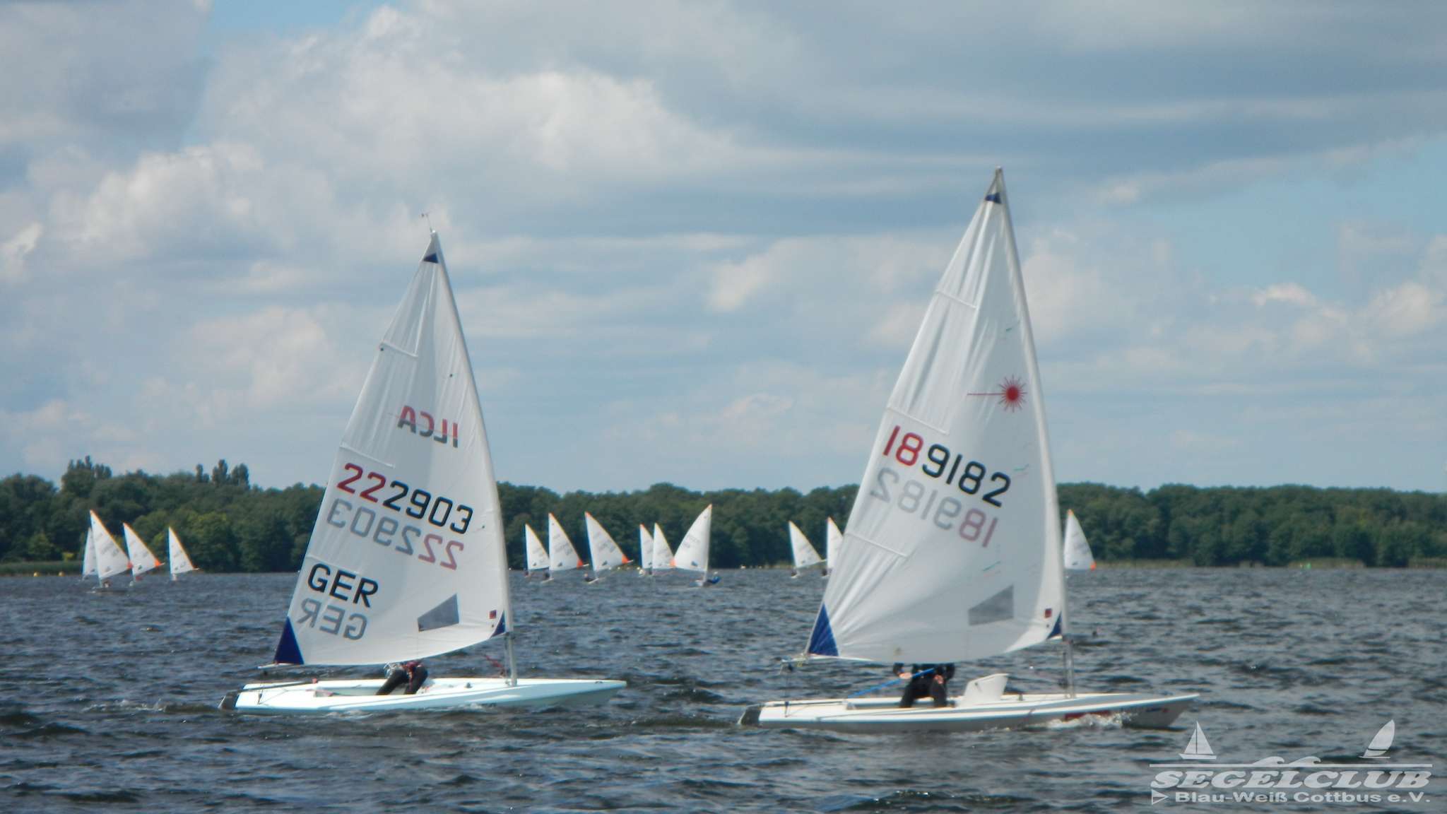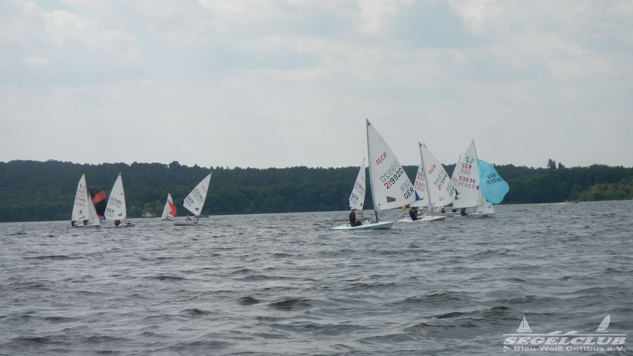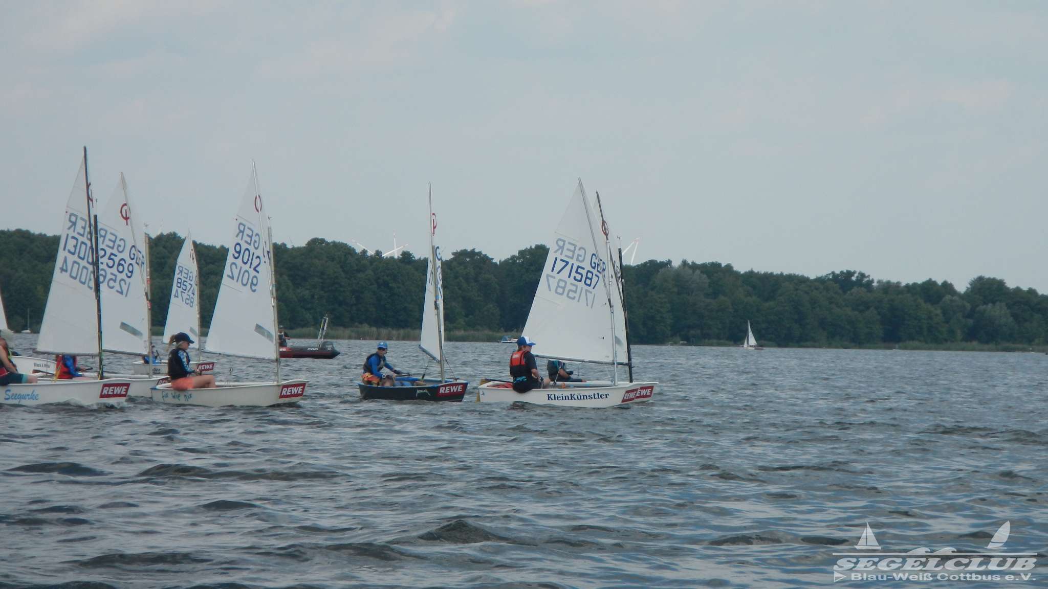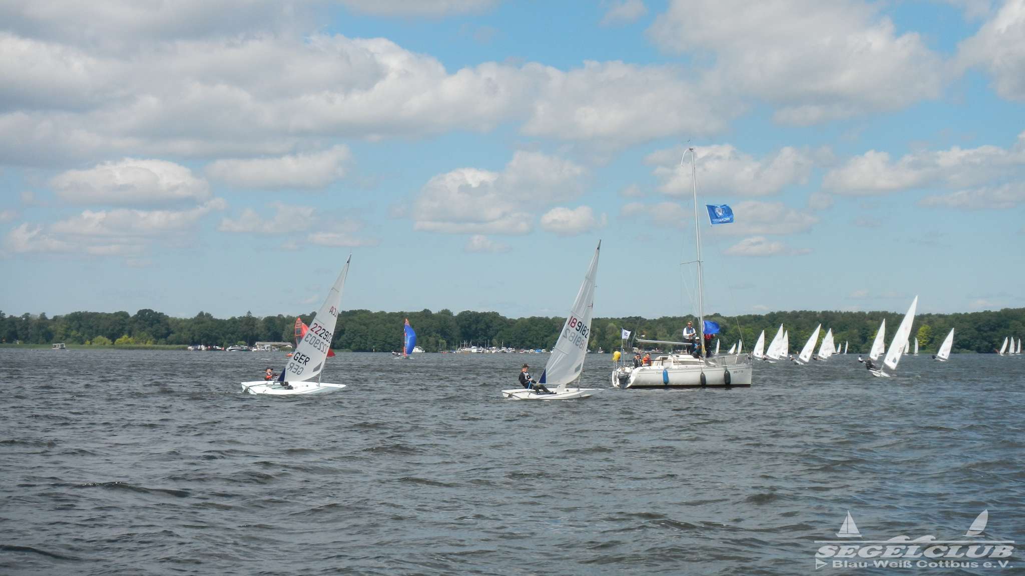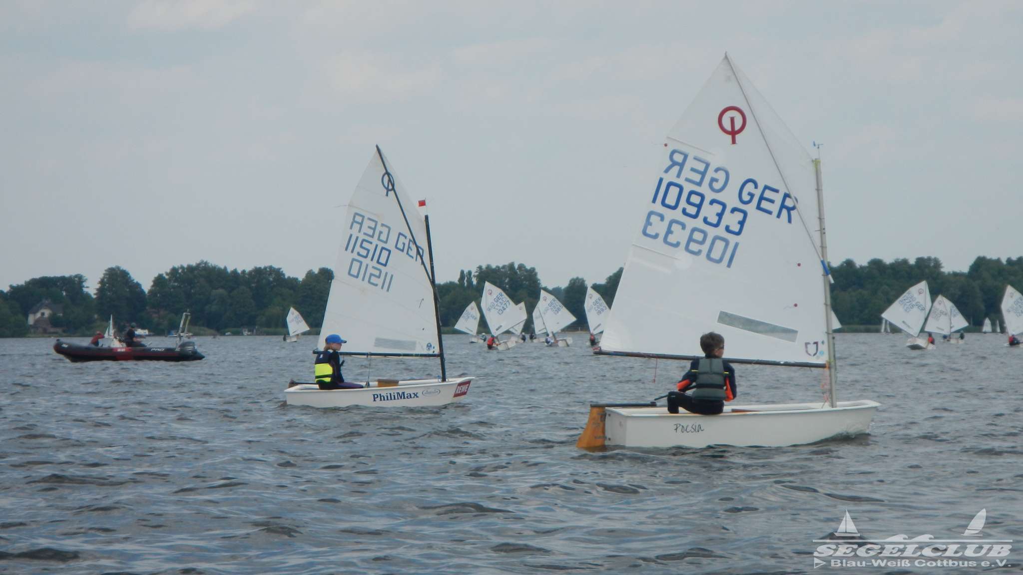 Unsere ILCA Jungs waren guter Dinge und so konnte die Regatta starten. Bei den Optis, die in einem anderen Feld und auch anderem Bereich des See starteten, sah es noch krasser aus. Das Opti Feld mit 92 OptiA und 68 OptiB Startern war einfach riesig für jemanden aus unserer Region. Sicher gibt es bestimmt noch größere Felder, aber das war schon eine Hausnummer.
