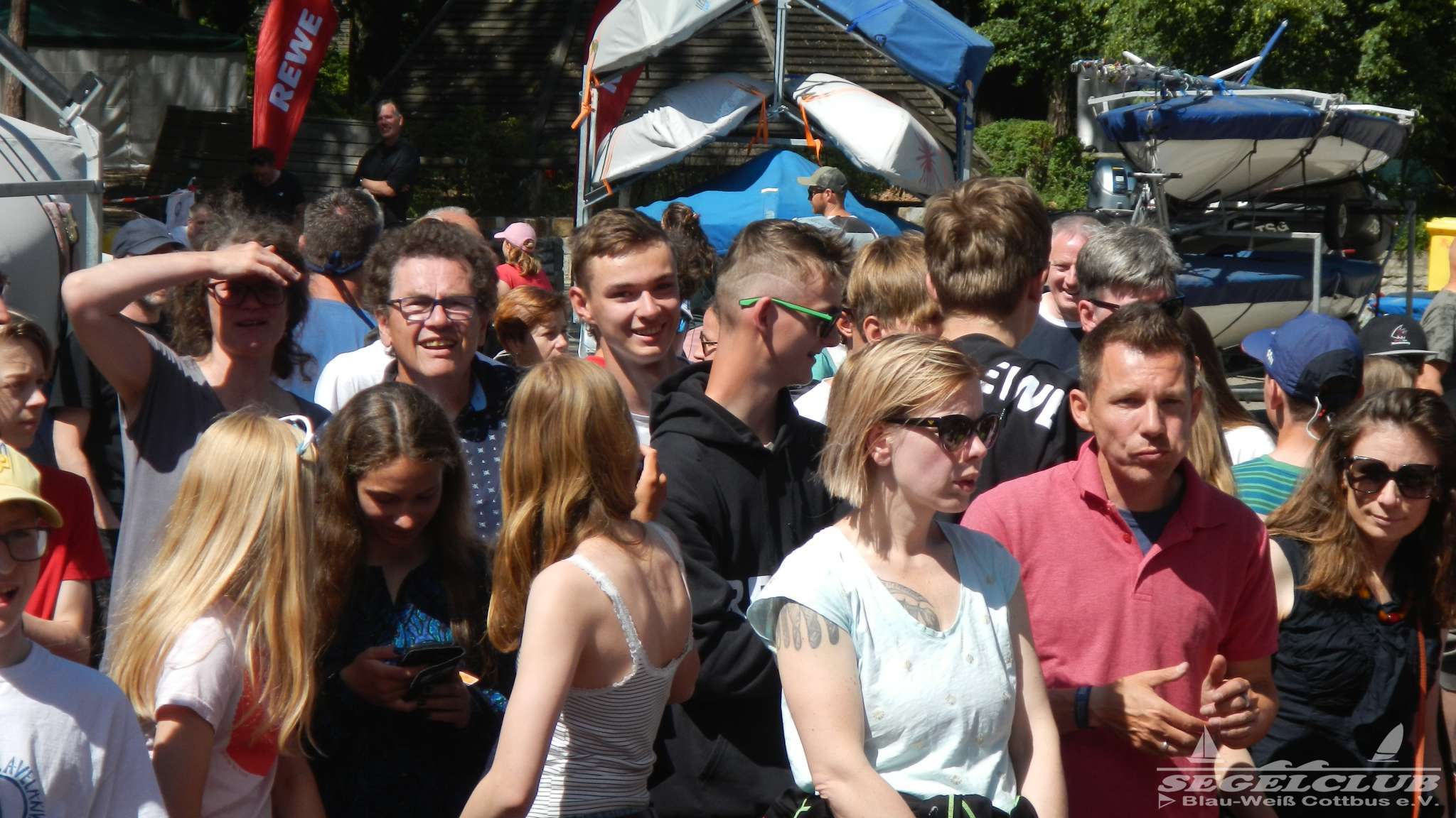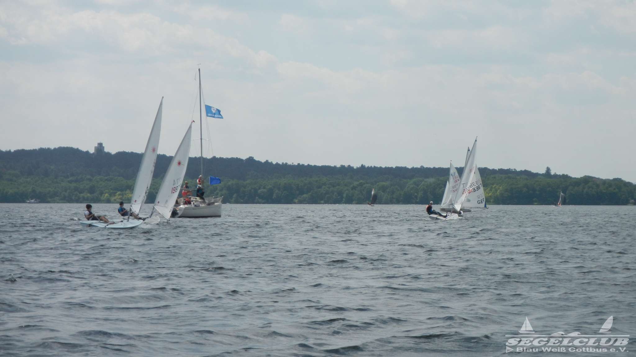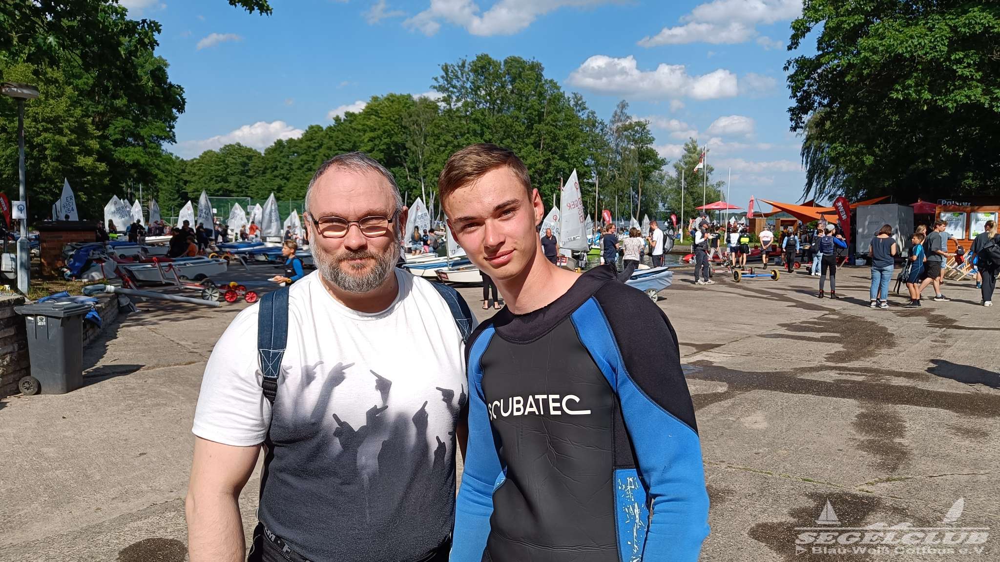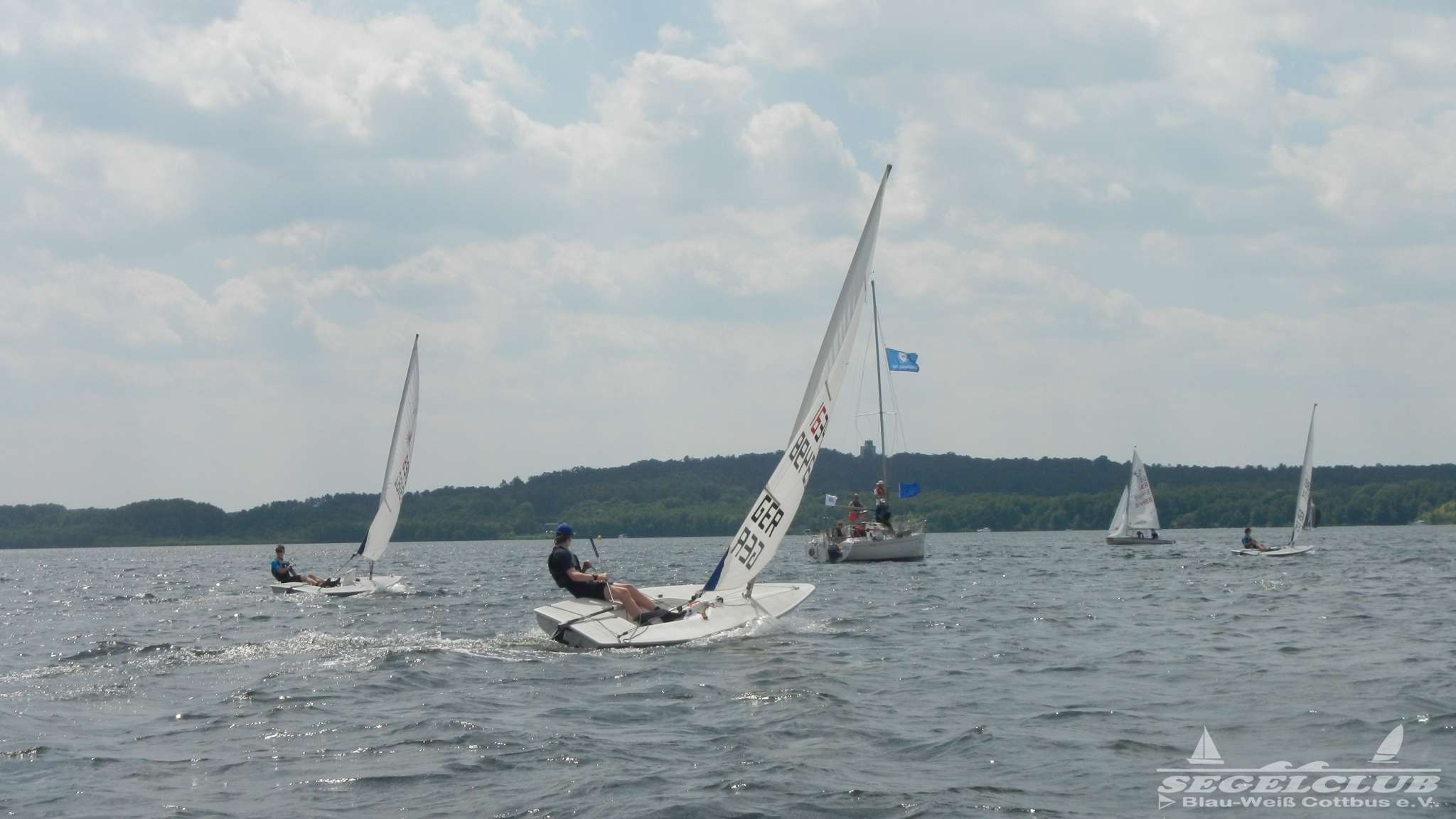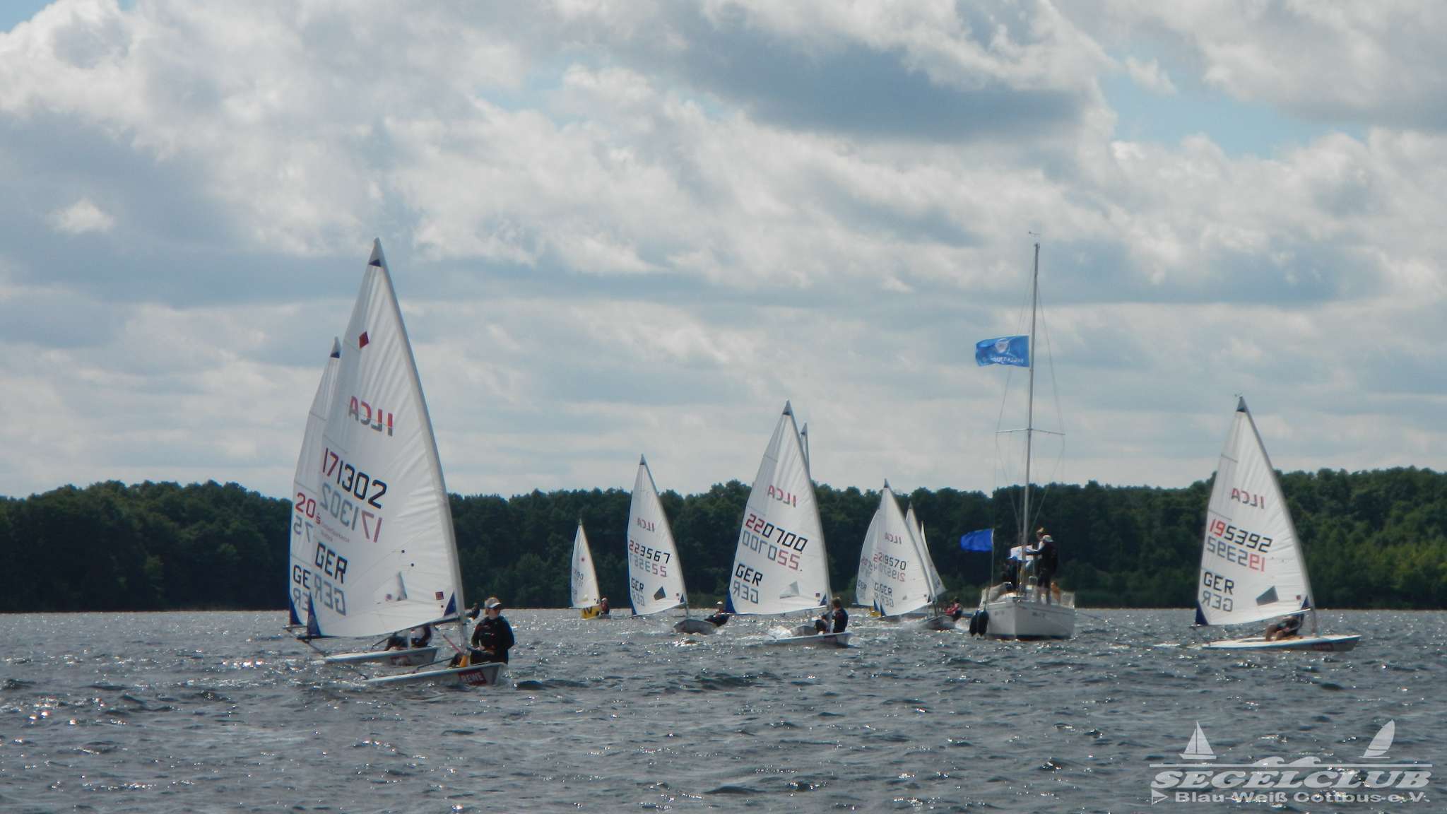 Unsere ILCA Jungs waren guter Dinge und so konnte die Regatta starten. Bei den Optis, die in einem anderen Feld und auch anderem Bereich des See starteten, sah es noch krasser aus. Das Opti Feld mit 92 OptiA und 68 OptiB Startern war einfach riesig für jemanden aus unserer Region. Sicher gibt es bestimmt noch größere Felder, aber das war schon eine Hausnummer.