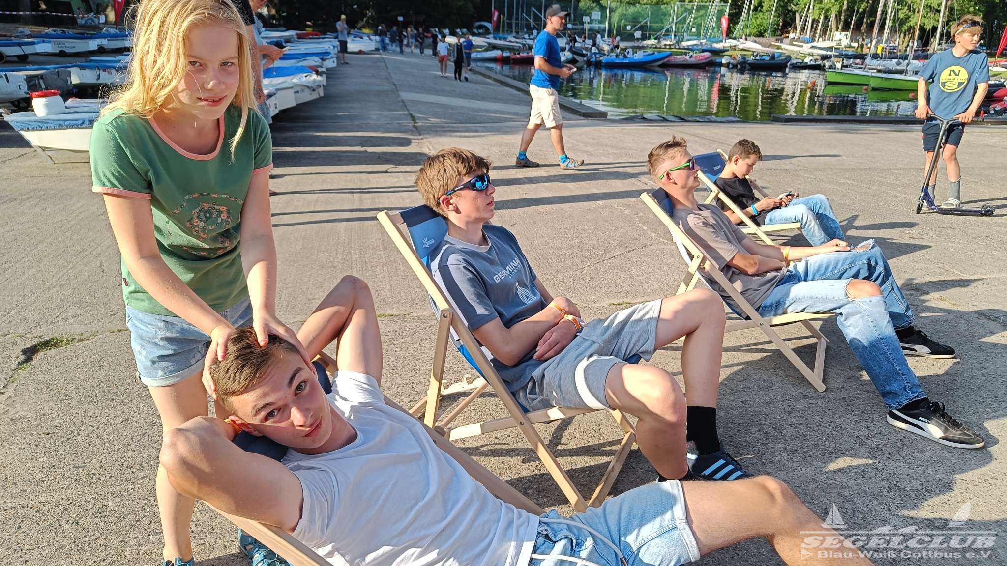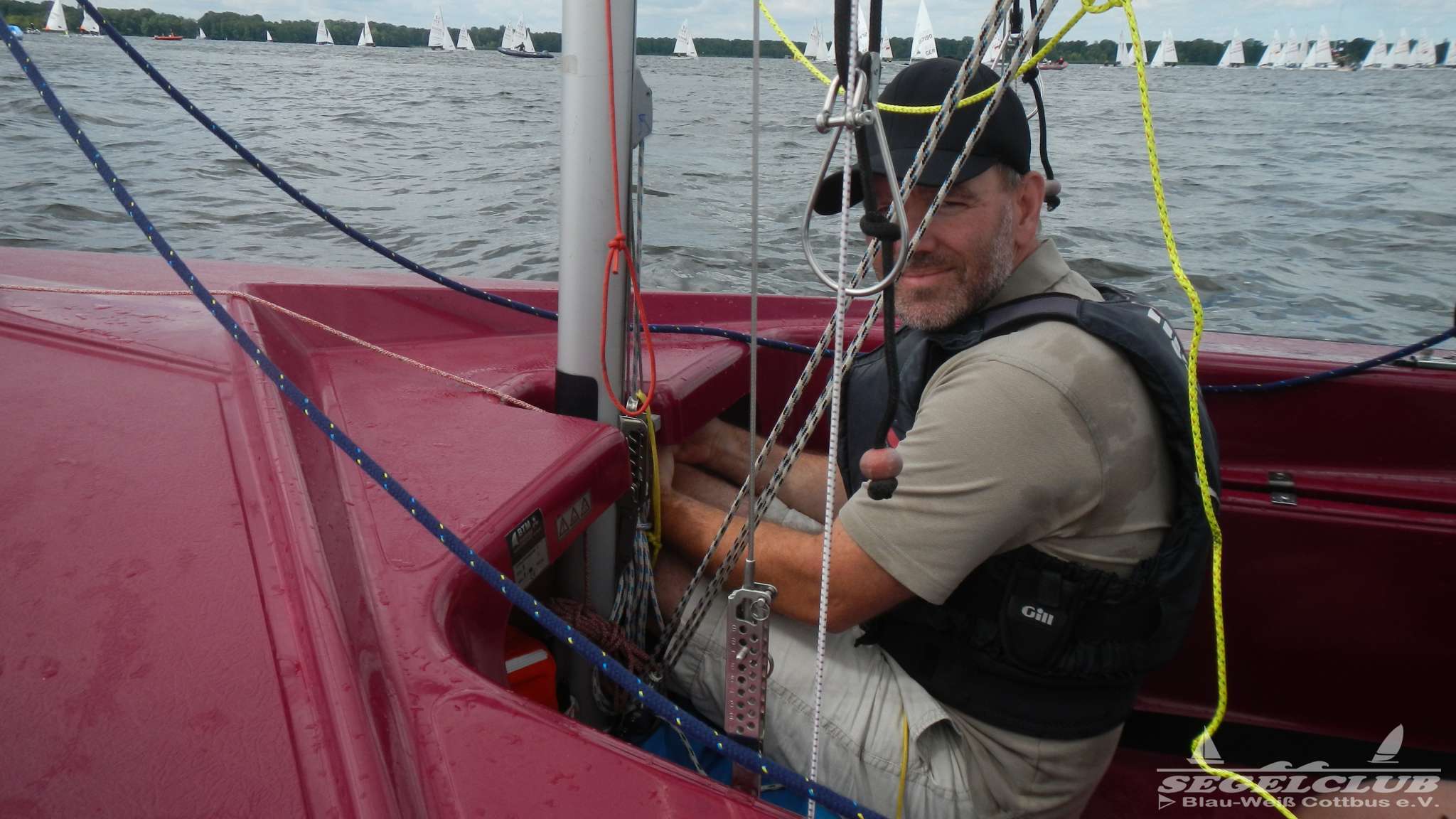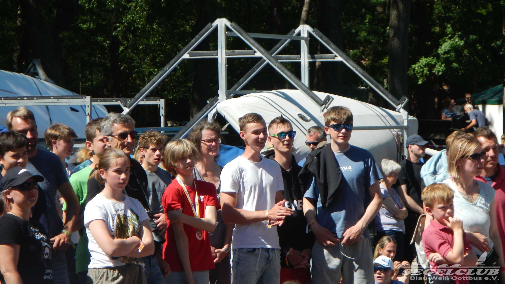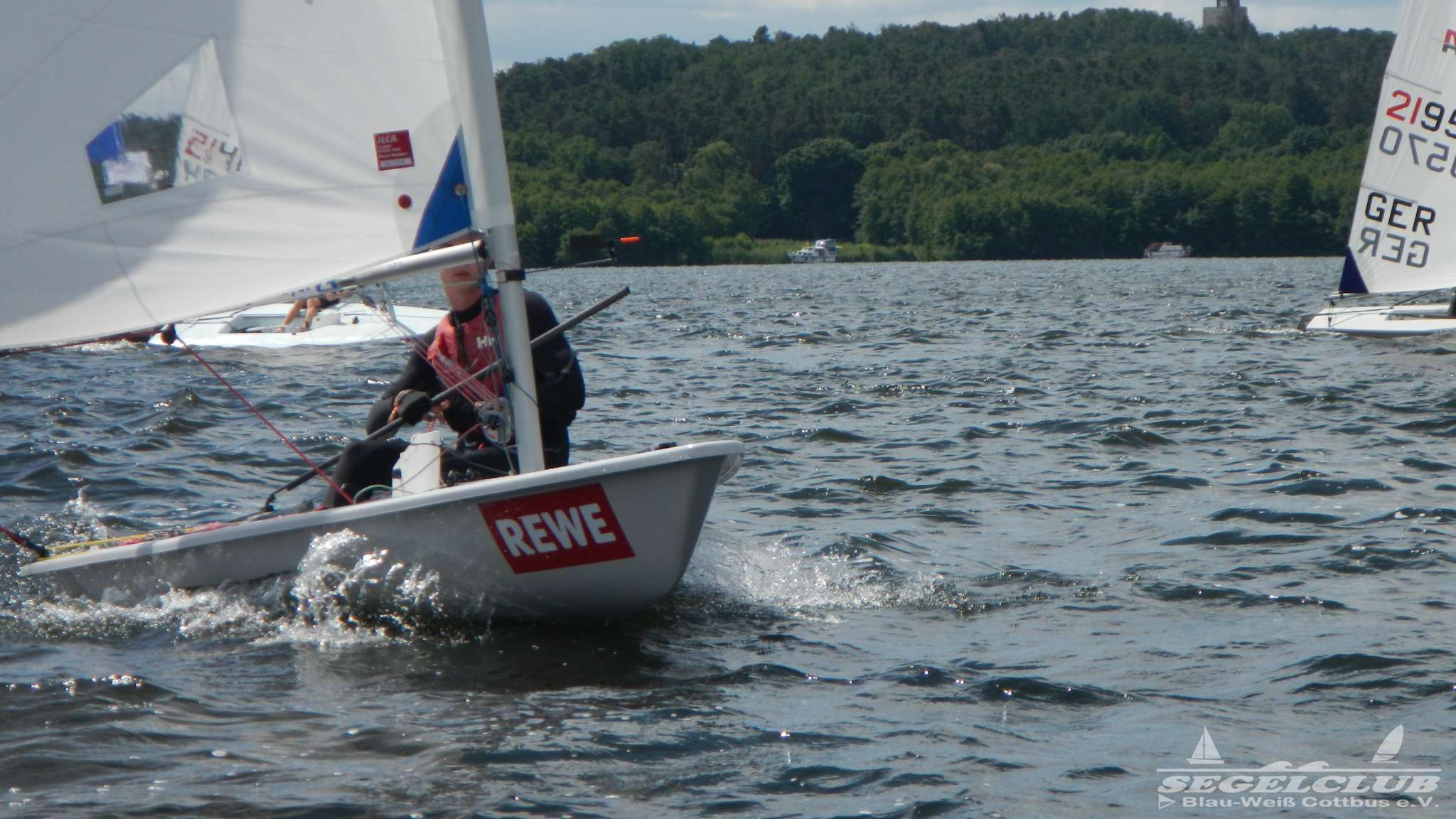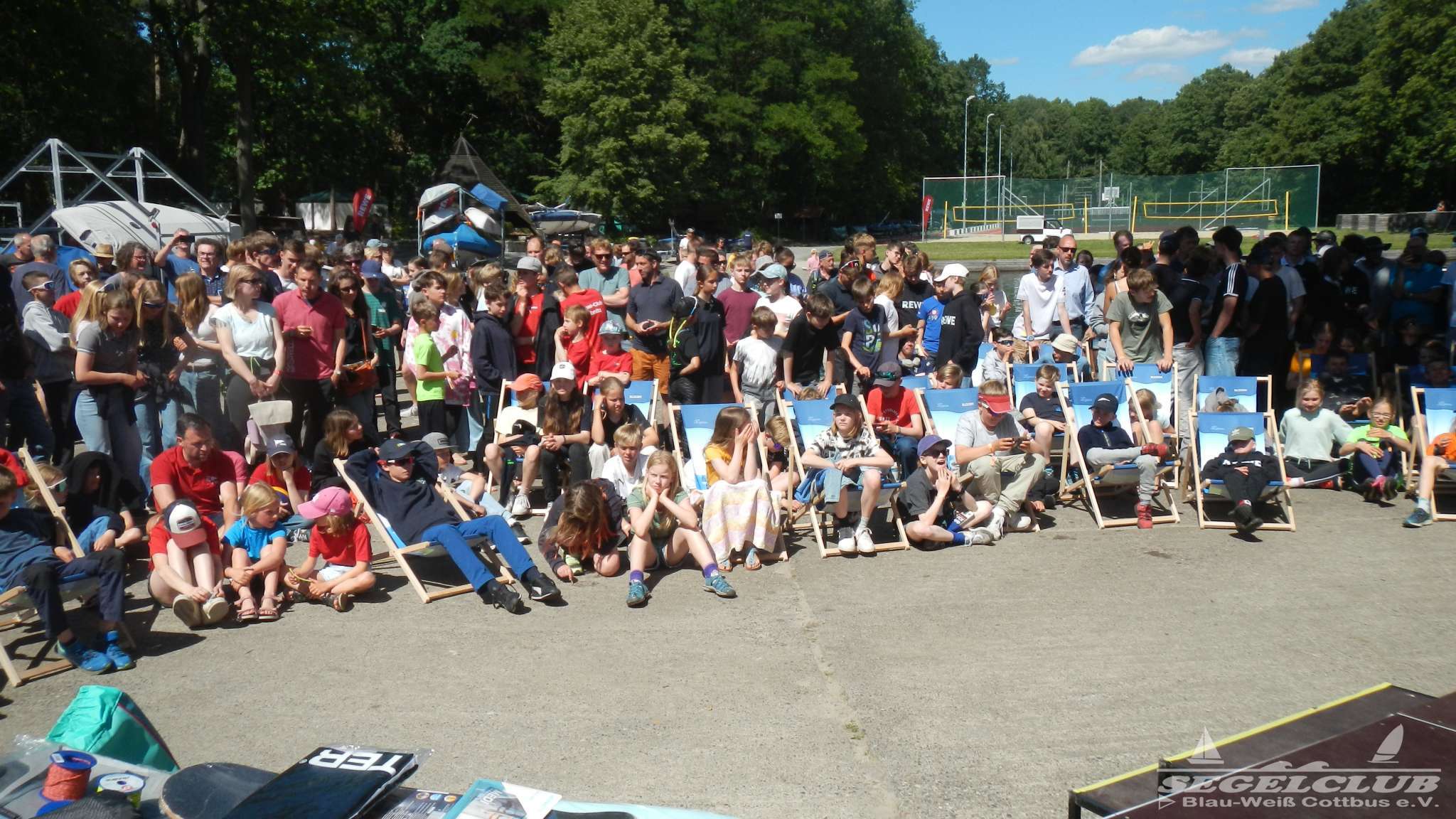 Unsere ILCA Jungs waren guter Dinge und so konnte die Regatta starten. Bei den Optis, die in einem anderen Feld und auch anderem Bereich des See starteten, sah es noch krasser aus. Das Opti Feld mit 92 OptiA und 68 OptiB Startern war einfach riesig für jemanden aus unserer Region. Sicher gibt es bestimmt noch größere Felder, aber das war schon eine Hausnummer.