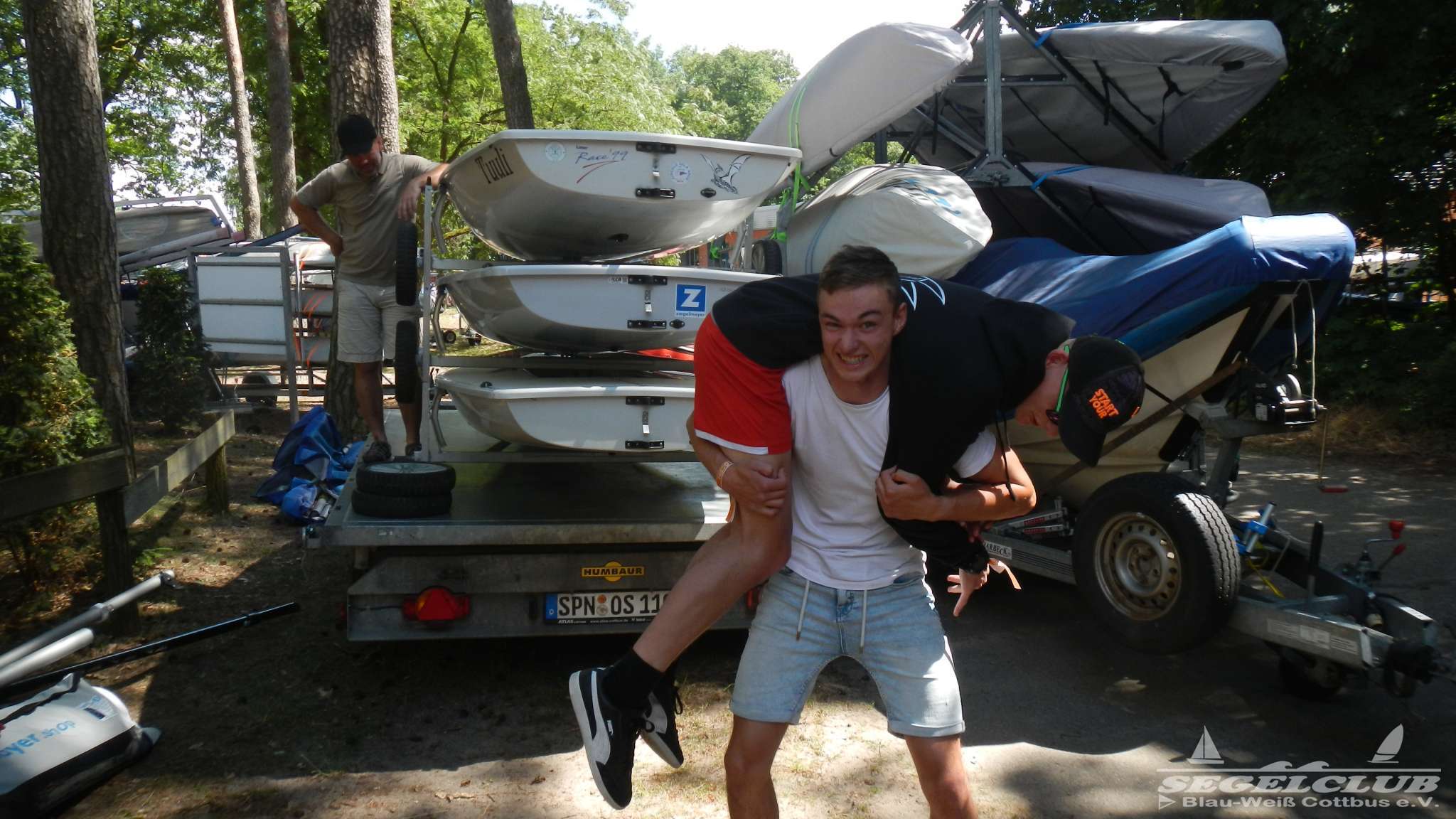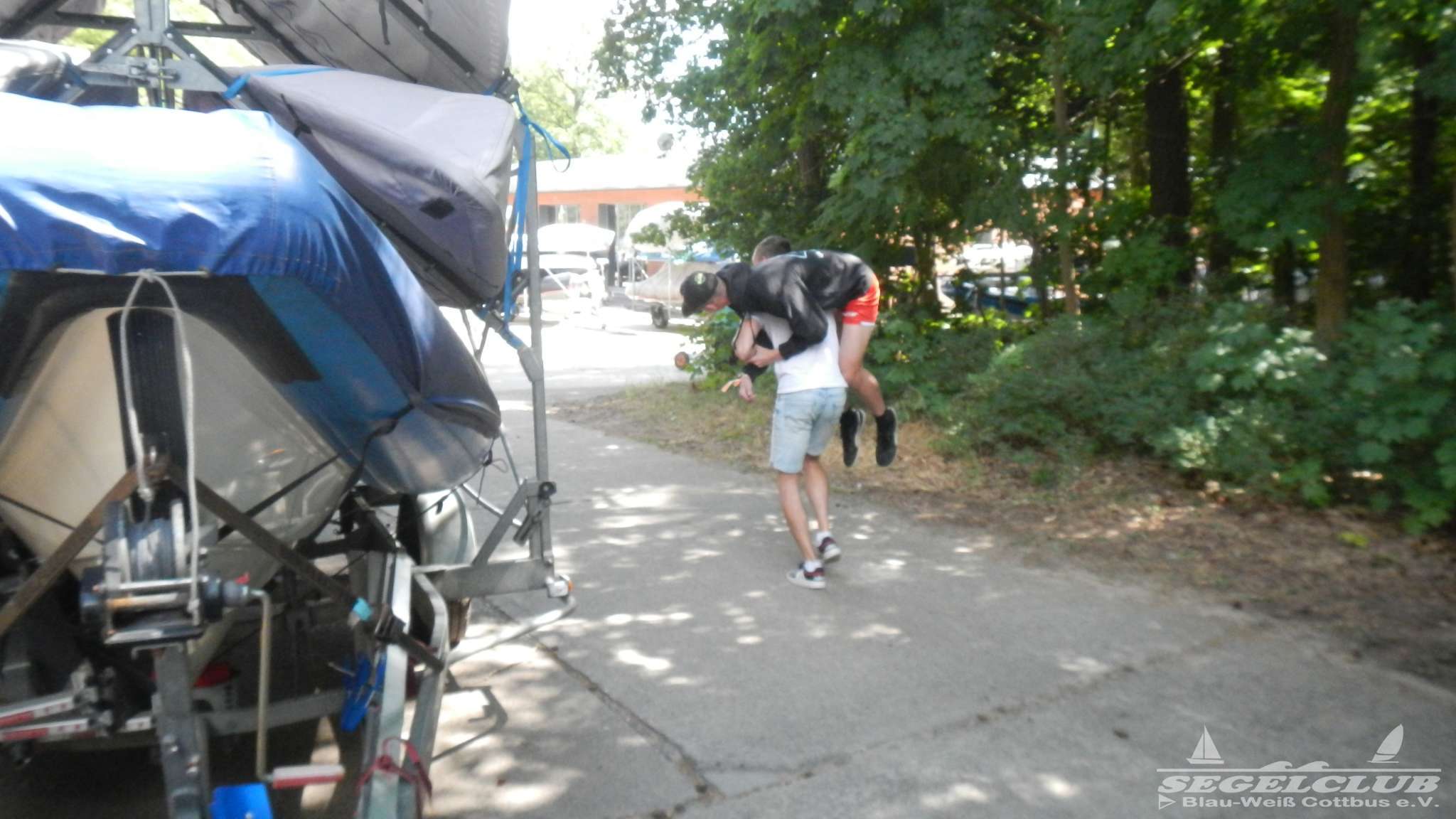 Am Freitag ging es dann relativ spät bei uns am Hafen los. Nach vielen Rennereien wegen Versicherungen und Bereinigungen wegen des Unfalls ging es nun wieder um die ursprüngliche Sache! Wir fuhren Richtung Berlin und der Transport der Boote war relativ unproblematisch. Ich selbst hatte meinen Finn Dinghy hinten am Auto auf dem Anhänger, mit dem ich als „Begleitfahrzeug“ an den nächsten Tagen den Kindern seelisch und moralisch zur Seite stehen wollte.
