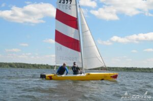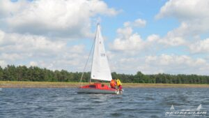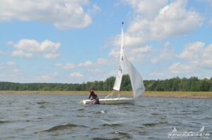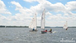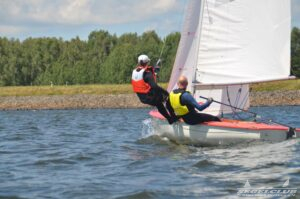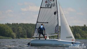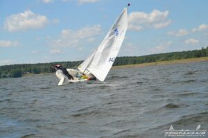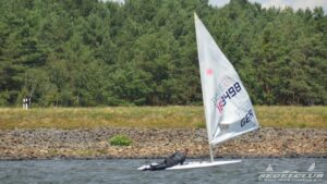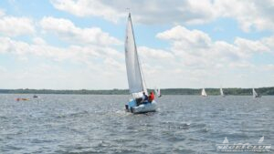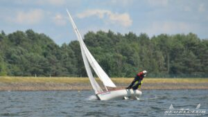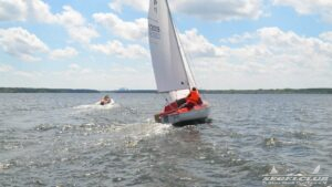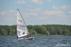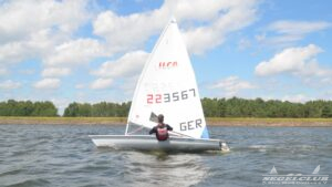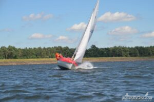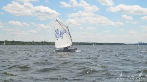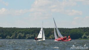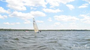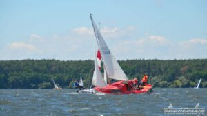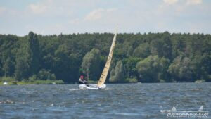 Zunächst ein paar Sätze zur Langstreckenregatta. Die Sommersonnenwende Ausfahrt wird in einem seperaten Beitrag behandelt. Bekanntermaßen wird nur eine Wettfahrt gesegelt, welche dafür aber wie der Name schon sagt eine recht lange ist. Wir hatten ordentlich Wind so das auf der Kreuz eigentlich dauerhaftes Ausreiten bzw. Trapez gestütztes Fahren angesagt war. Der Kurs hat mir persönlich sehr gut gefallen, es wurden drei wirklich große Dreiecke gefahren. Wobei die Schläge von Tonne 1 zu 2 und von Tonne 2 zu 3 richtig richtig lang waren. Das sind die Raumschläge, hier konnte man schön mit dem Wind arbeiten und bei Wind-schwachen Stellen luven und bei einsetzenden Böen dann abfallen und mit voll Speed los rocken. Die Kreuz war sehr gut ausbalanciert und dank der klaren Winddreher konnte man taktisch viel machen.
