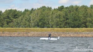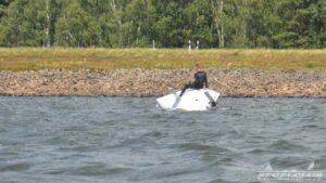 Einen Zwischenfall beim Start gab es noch, den kann man hier ruhig erwähnen. Sportsfreundin Conni und Paule hat eine Kollision zur Kenterung gebracht. Dabei öffnete sich die Automatikweste von Conni und wurde leider eher zur Gefahr als zur Rettungshilfe. Marc Schlossarek kam im Getummel des Startfeldes zu Hilfe und half die Situation zu bereinigen. Dank Marc kam es hier nicht so einem bösen Ende.