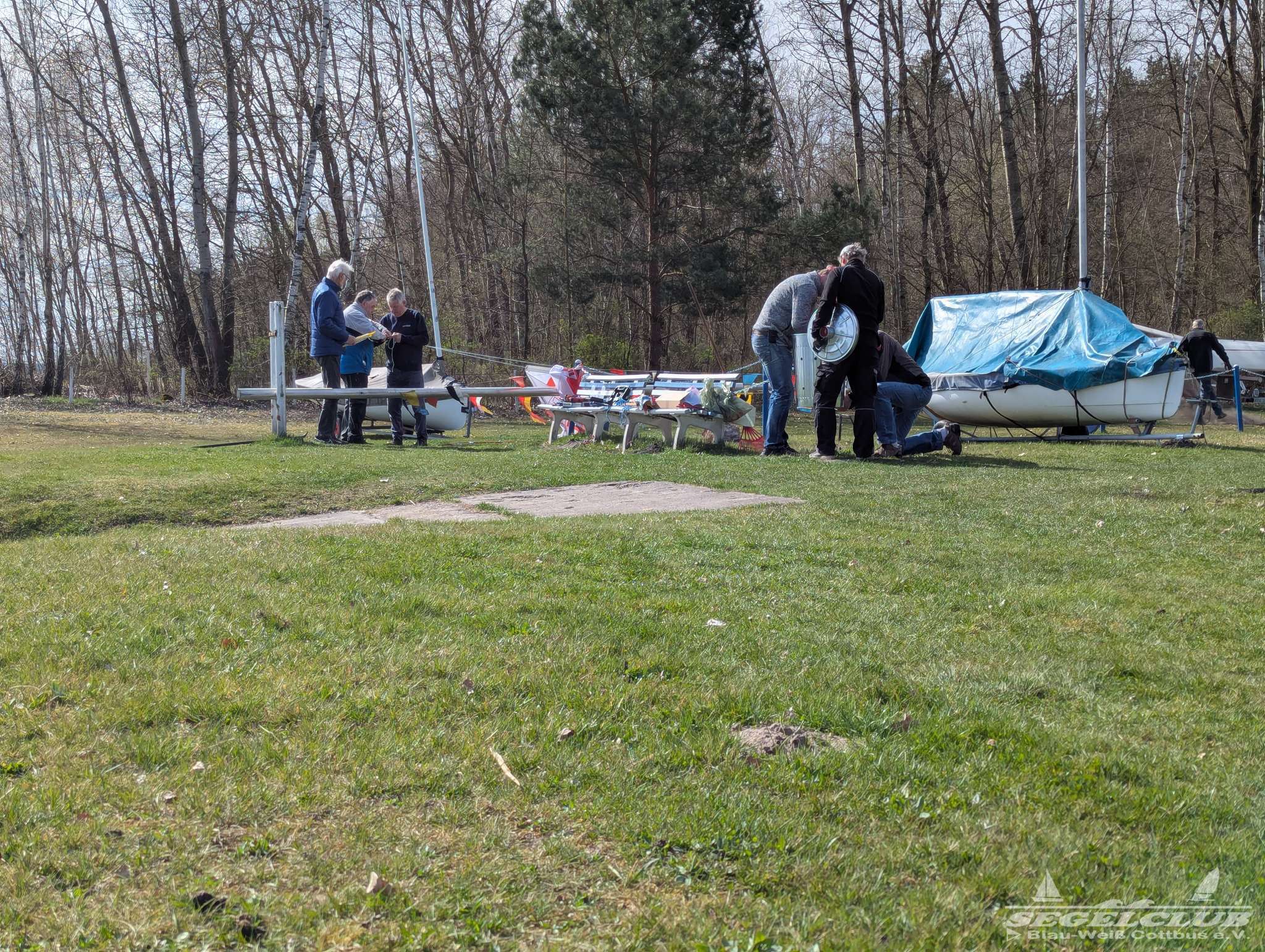 Bei freundlichem Wetter, mit naja verhaltenen kühlen Temperaturen, starteten wir 10 Uhr motiviert und teils ausgestattet mit Rechen und Werkzeug unseren Arbeitseinsatz zum Ansegeln 2025.