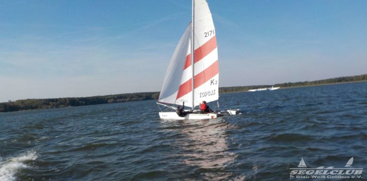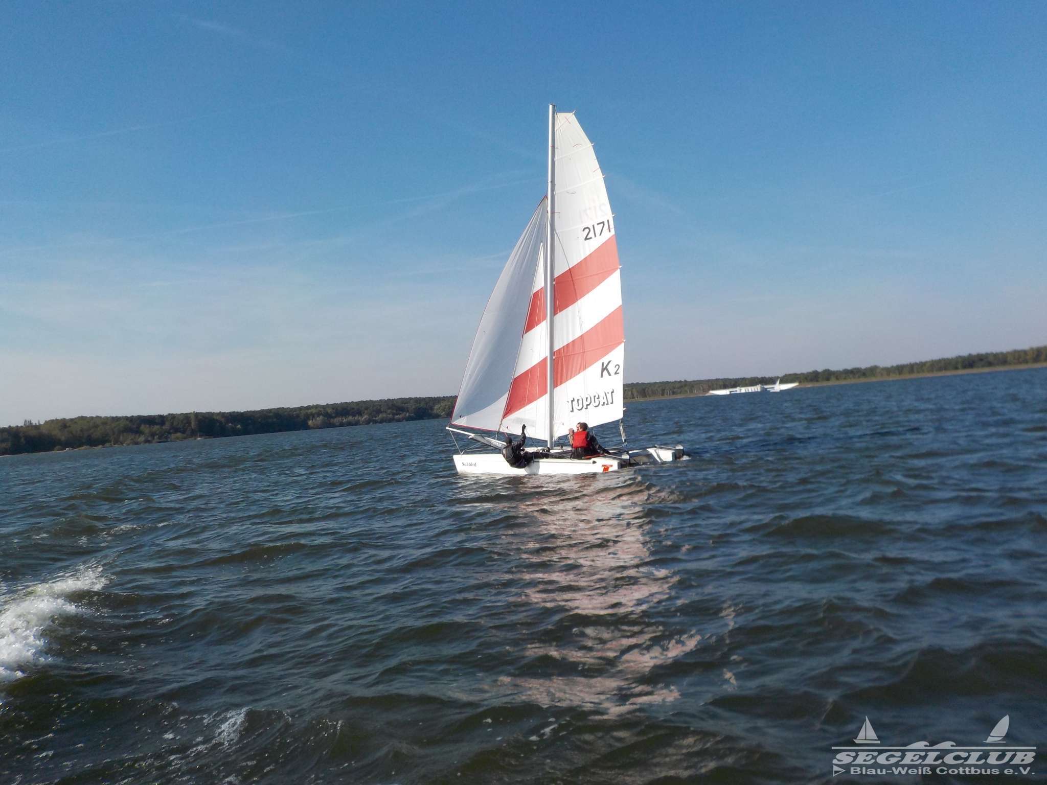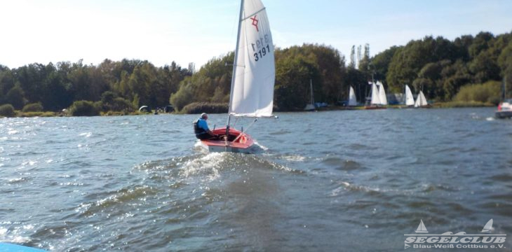 Beim Absegeln war diesmal guter Wind. Uns besuchten die üblichen Genossen von Rot-Weiss Spremberg.